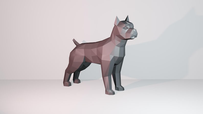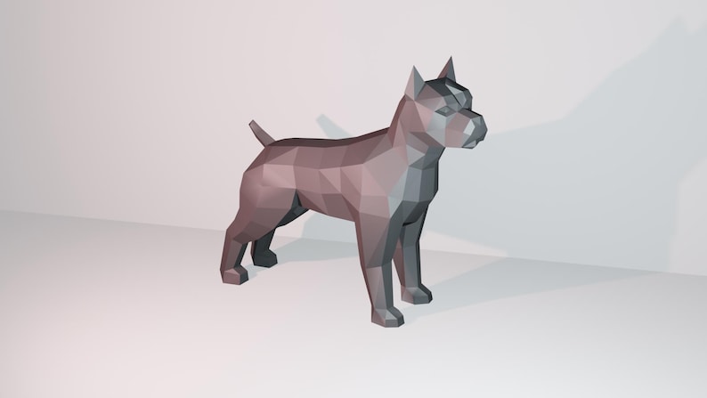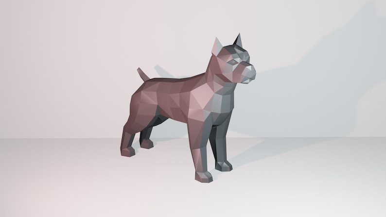 Showcase your love for pitbulls with this 3D origami pitbull papercraft model. Picture a majestic pitbull coming to life under your fingertips, ready to proudly stand in your living room or become the perfect gift for a dog enthusiast. This creative and fun project is designed for DIY enthusiasts, dog lovers, and papercraft fans. With clear and detailed instructions, assembly is a breeze, even for beginners. Discover other fascinating models in our 3D origami dog papercraft collection.