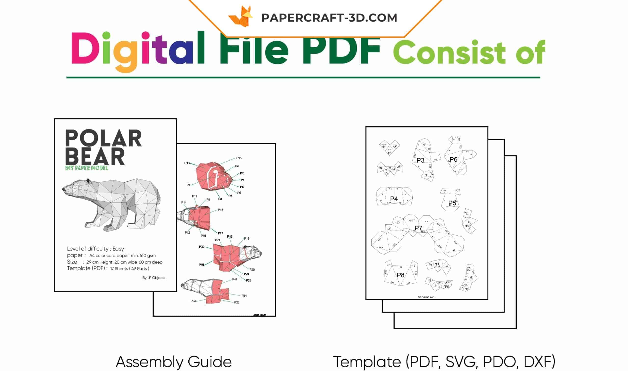 Technical specifications of the polar bear 3D origami papercraft