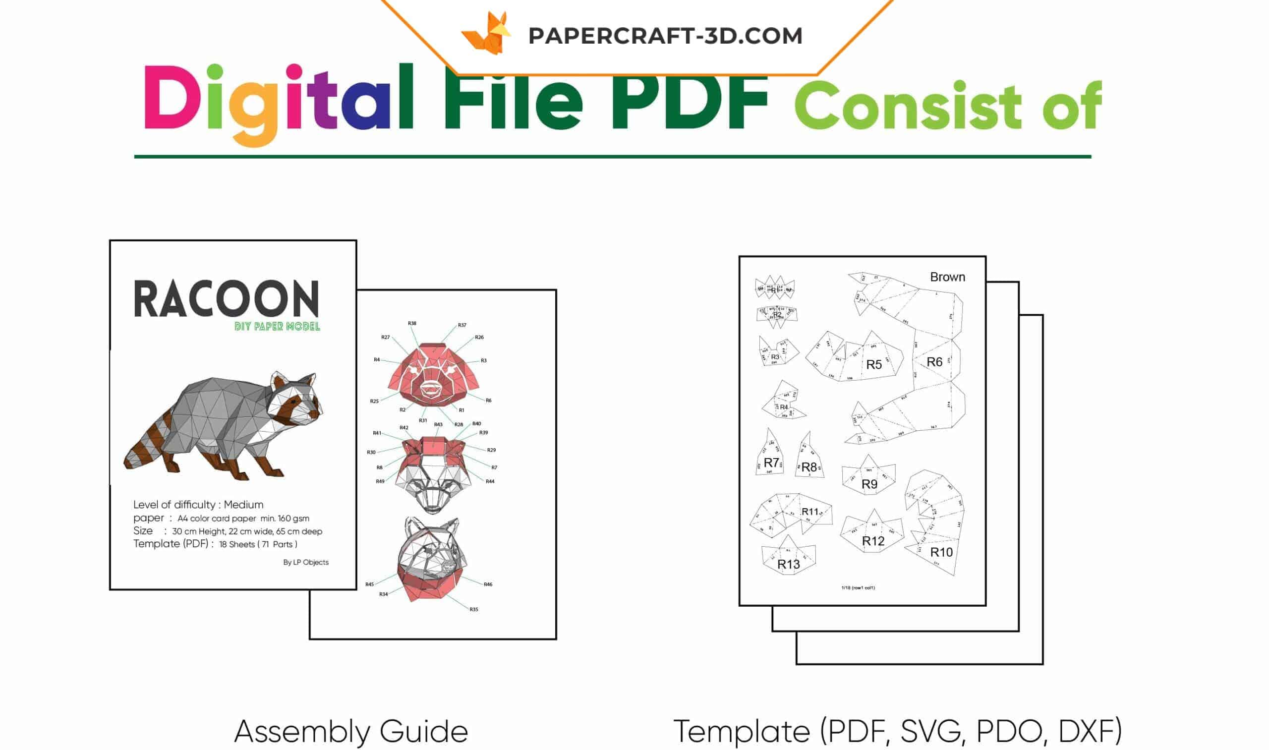 Whether you prefer the digital format or receiving a complete box with all necessary accessories, our 3D raccoon origami papercraft is available in both formats. Dive into the art of folding with detailed instructions and create this unique piece.