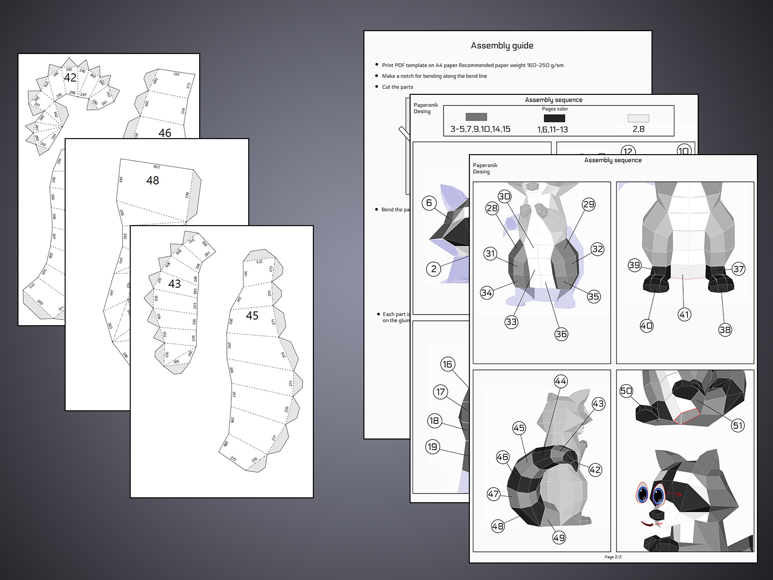 Unleash your creativity and enjoy a relaxing, satisfying activity with our raccoon papercraft. Perfect for hobbyists, decorators, educators, and pop culture enthusiasts alike, this model is sure to delight and inspire. Don’t wait – start crafting your own paper raccoon now!