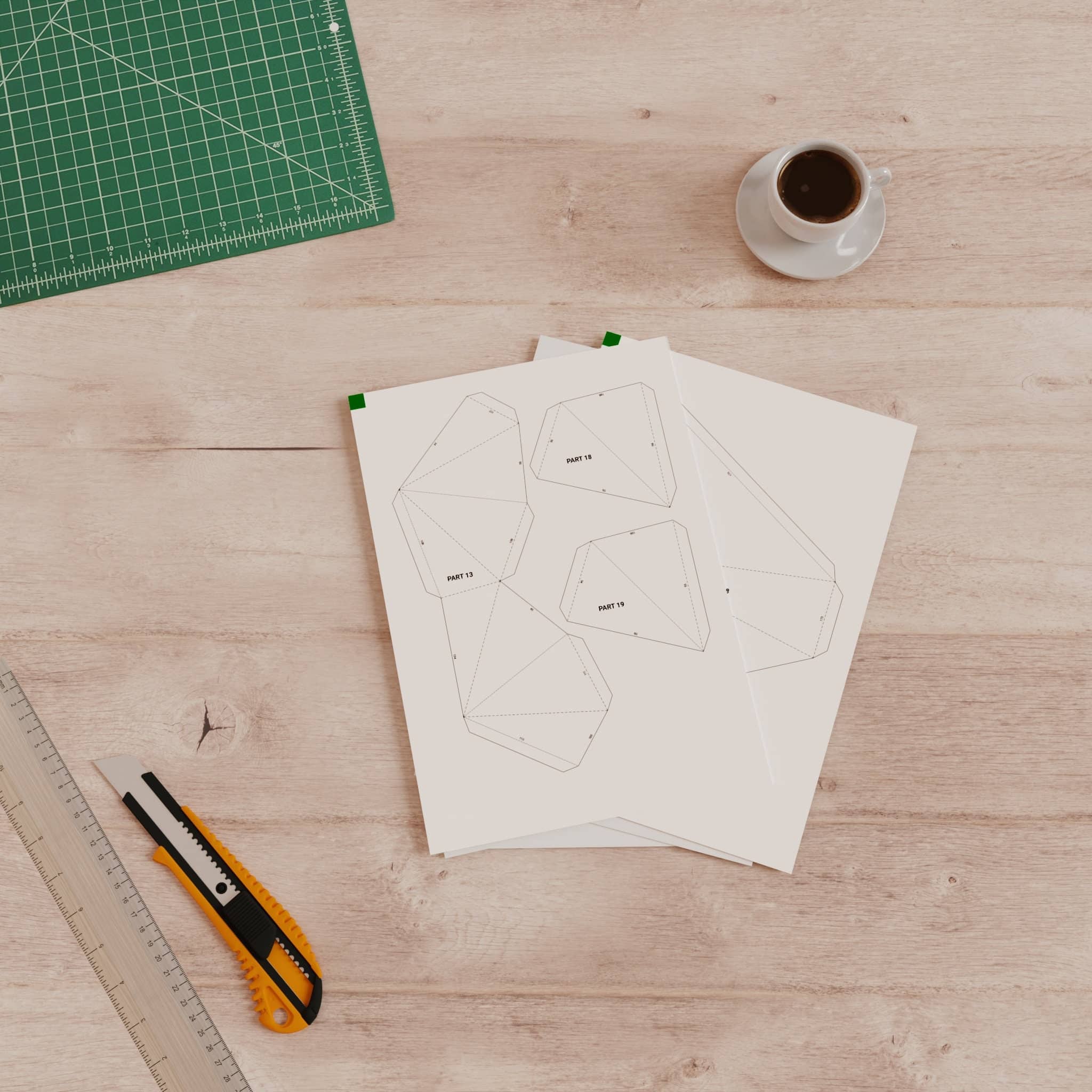 When you order, you’ ll receive a PDF and/or SVG|DXF file with assembly instructions and paper templates for printing. You can alsopurchase the necessary paper sheets and accessories.