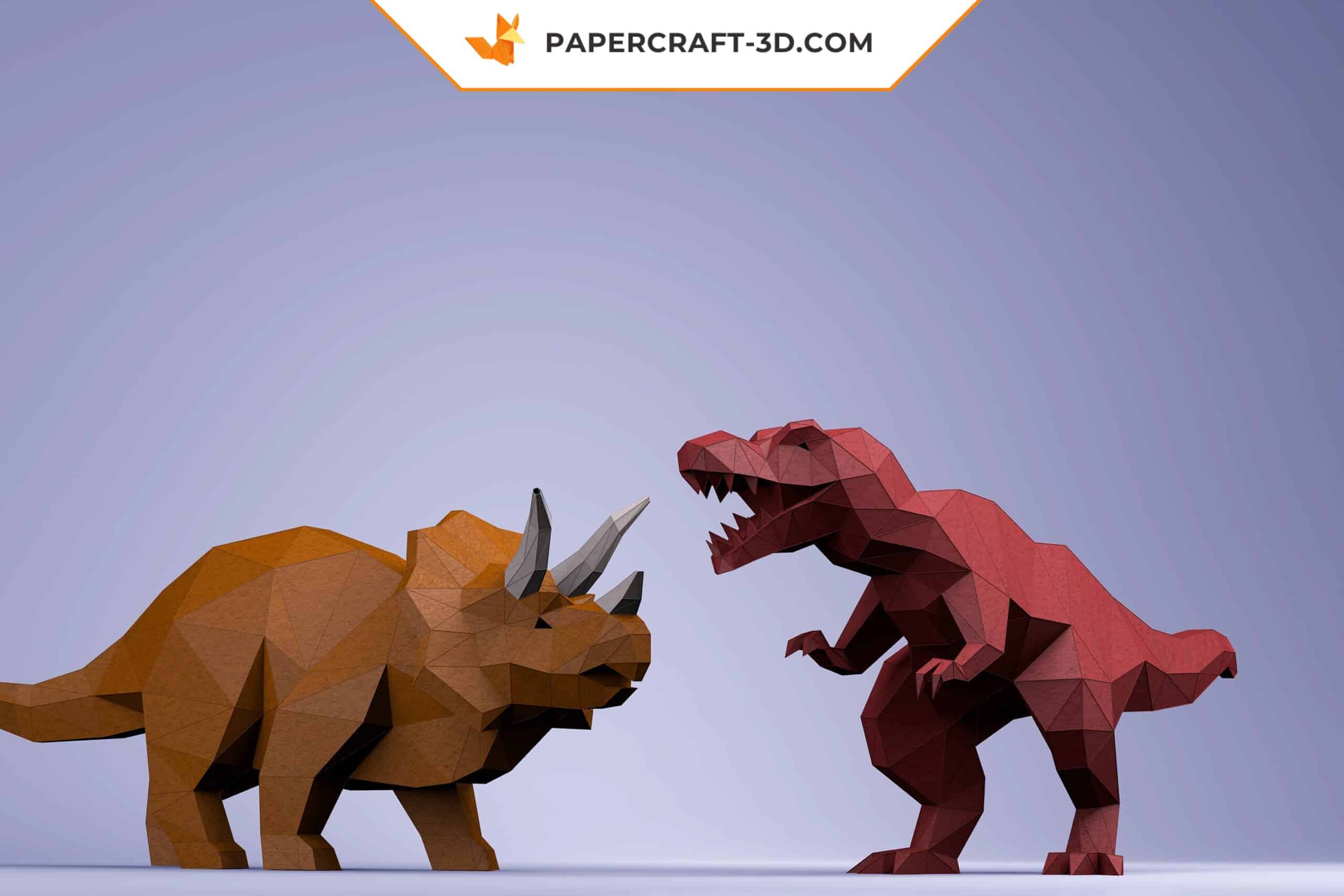 3D origami T-Rex and Triceratops dinosaur papercraft