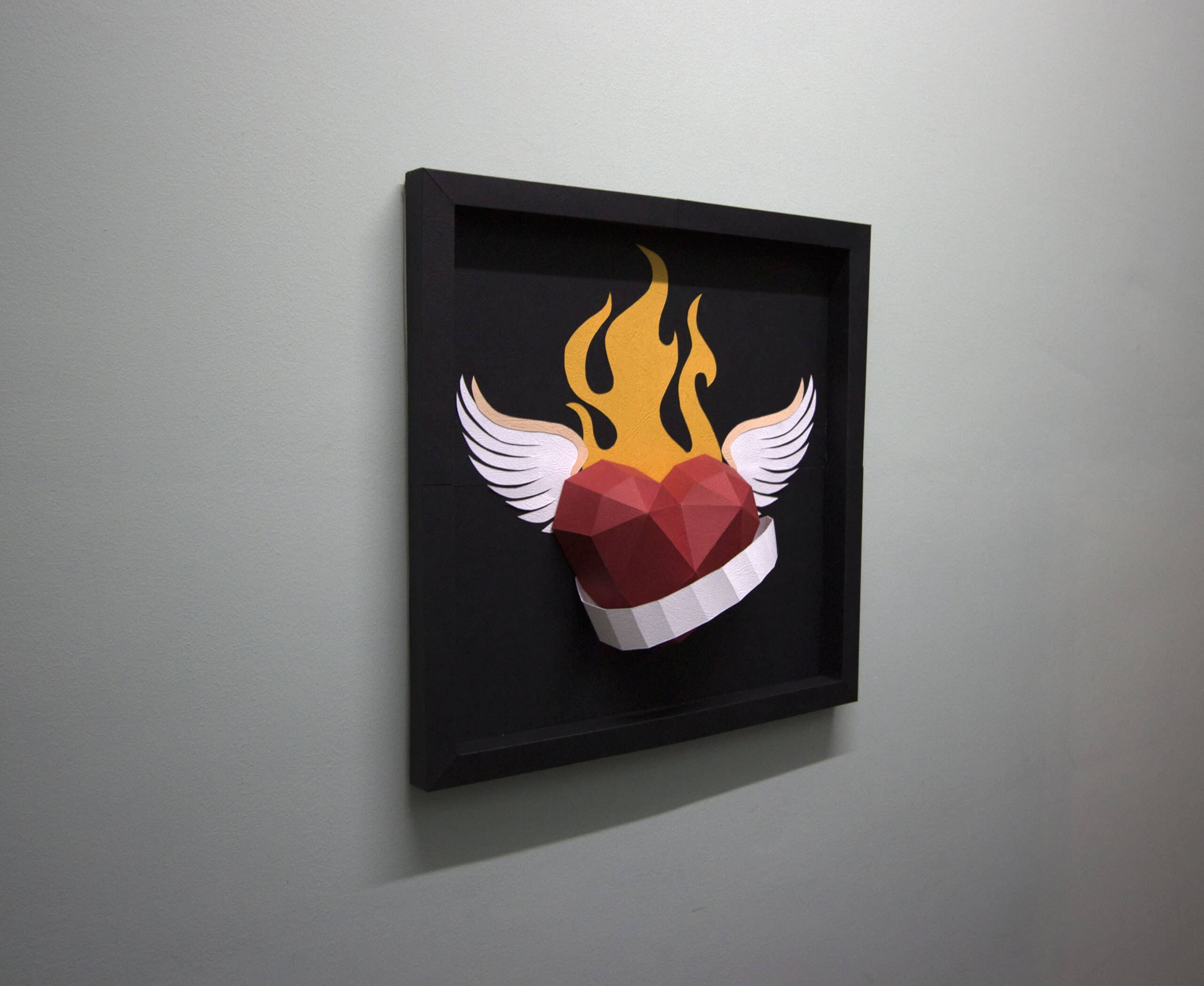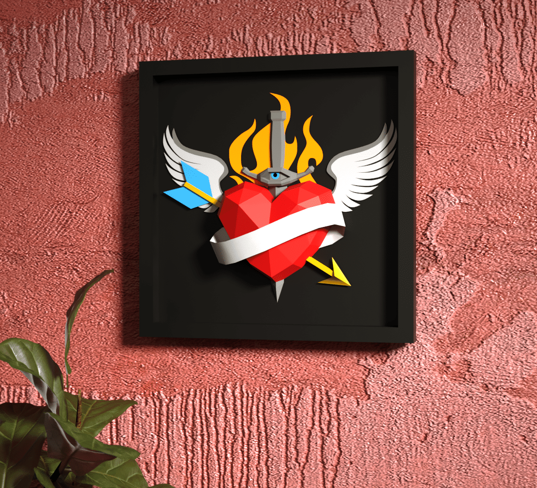 Create a masterpiece with the 3D origami tattooed heart frame papercraft