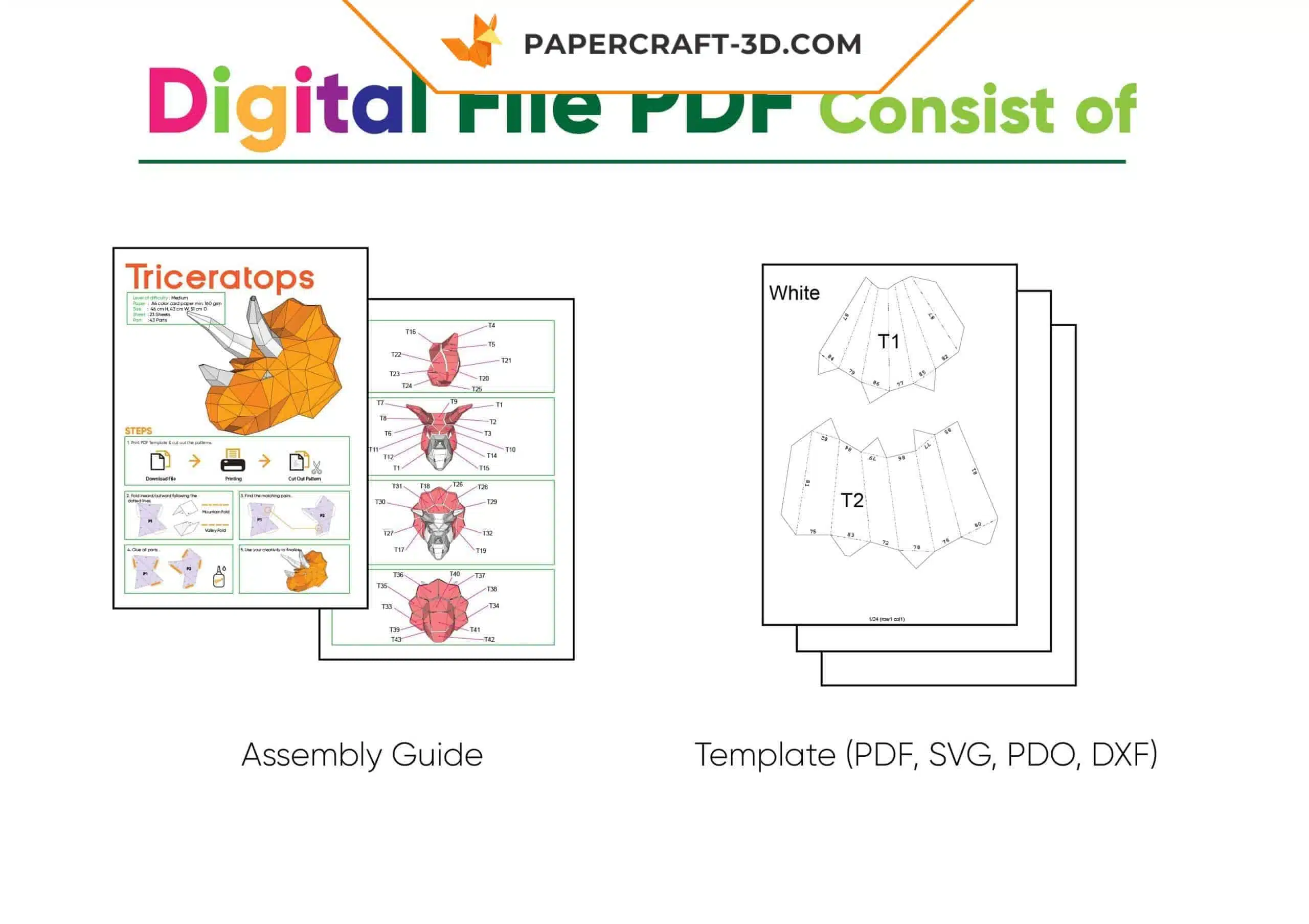 Available formats for the Triceratops mask papercraft in 3D origami