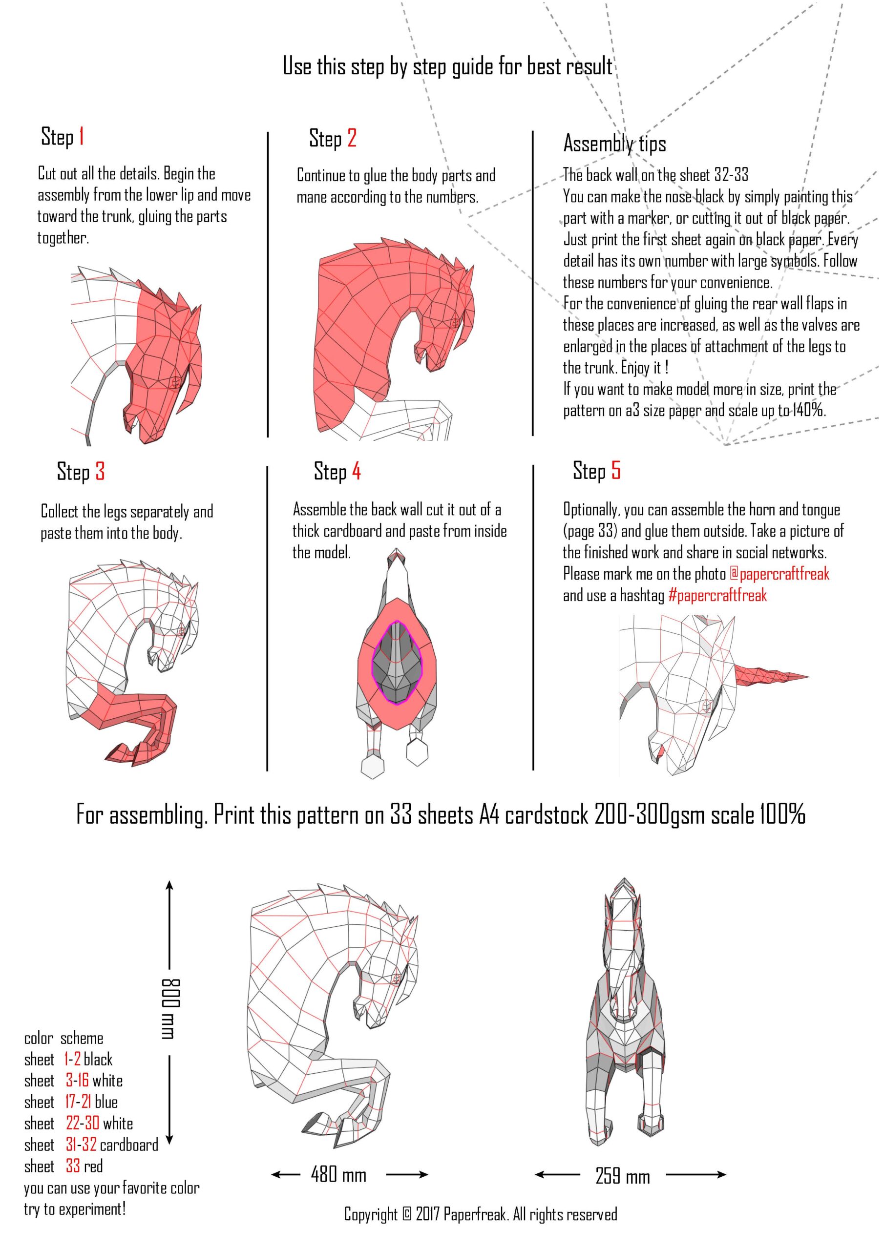 Don’t let this magical opportunity slip away! Immerse yourself in this enchanting world and create your own 3D origami unicorn papercraft. Whether to beautify your interior or offer a unique gift, this model is a true work of art within reach. Add it to your cart today and unleash your imagination!