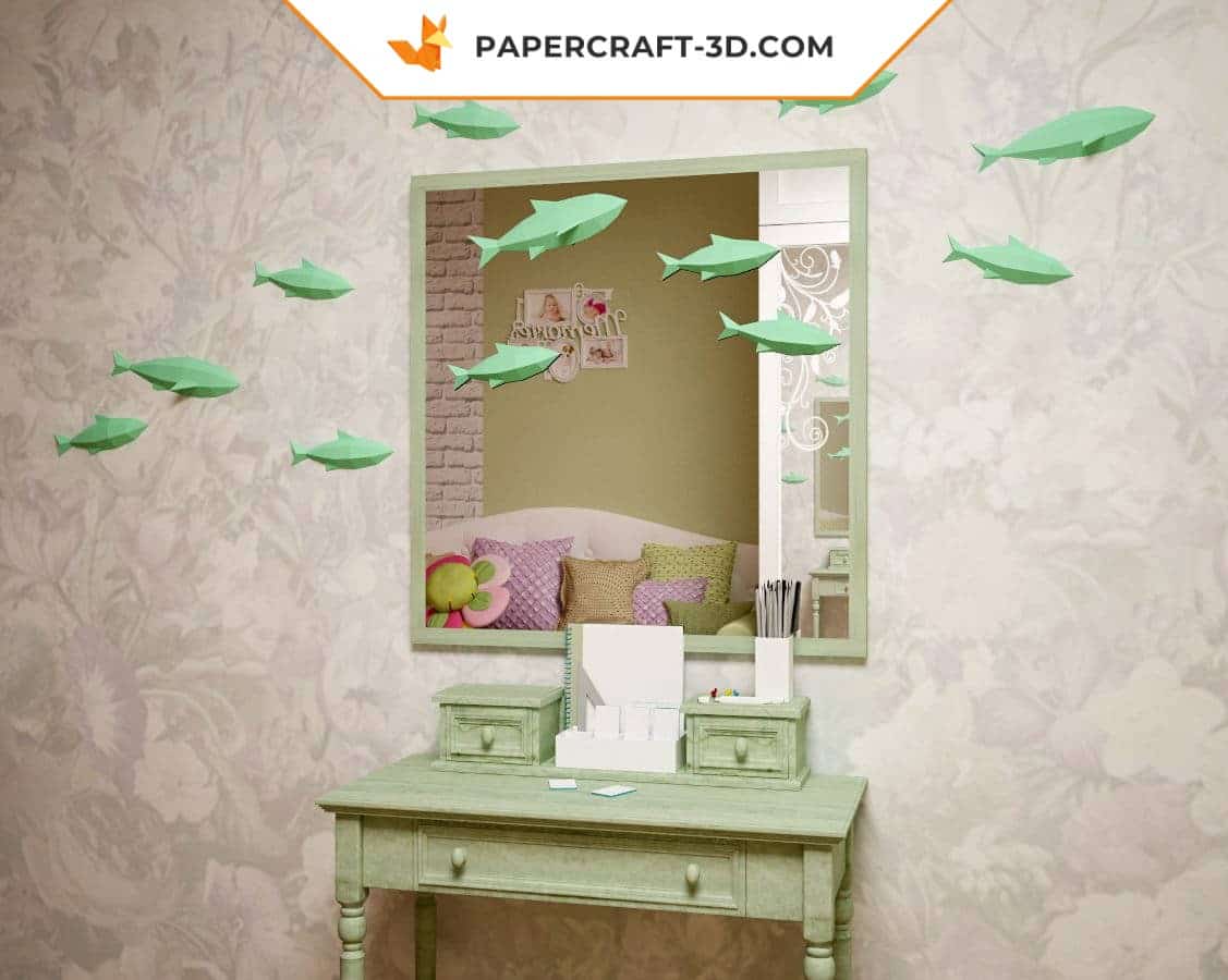 Wall-mounted fish papercraft in origami: a creative dive