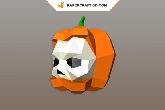 Papercraft pumpkin skull kit in 3D origami: two formats available
