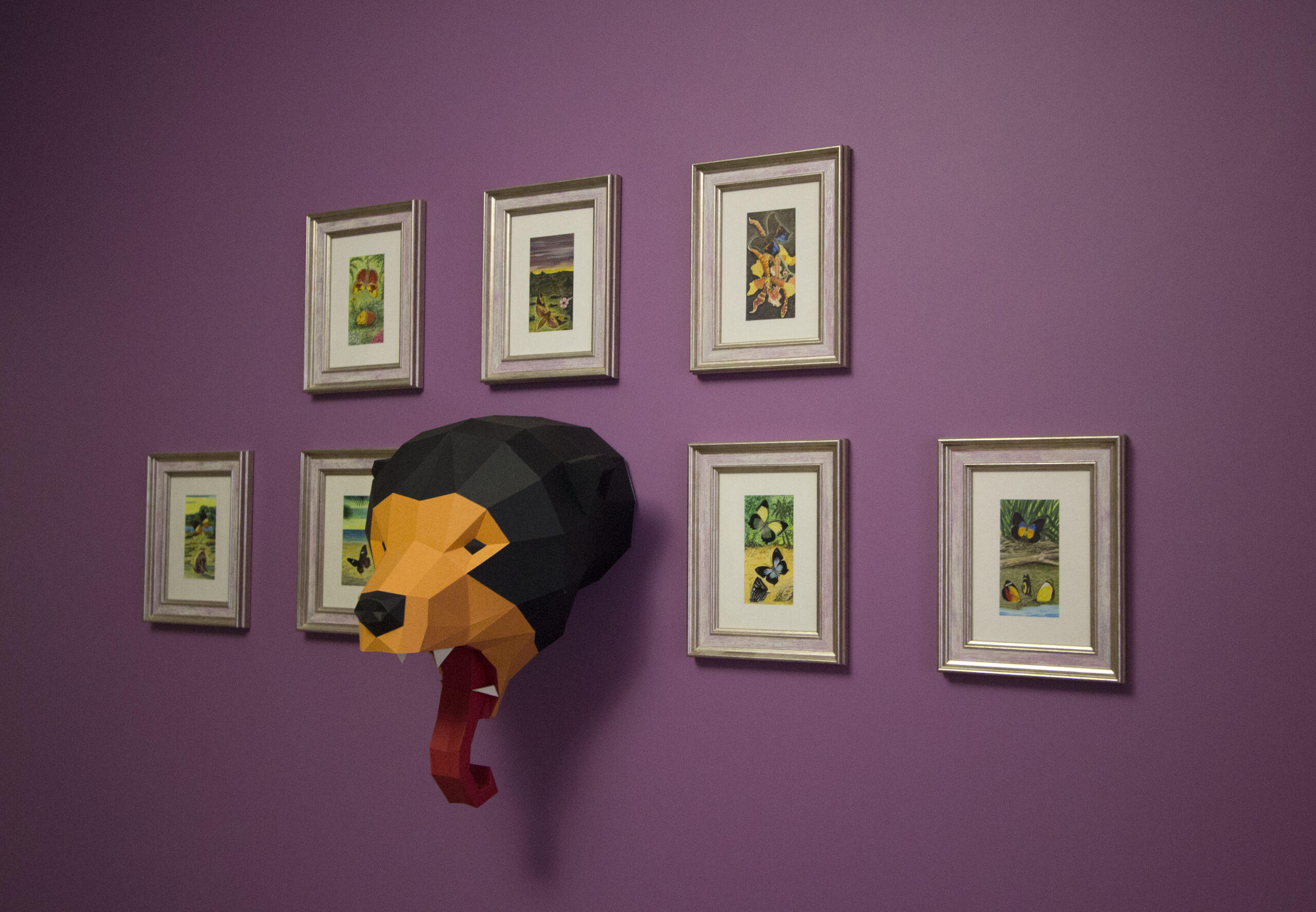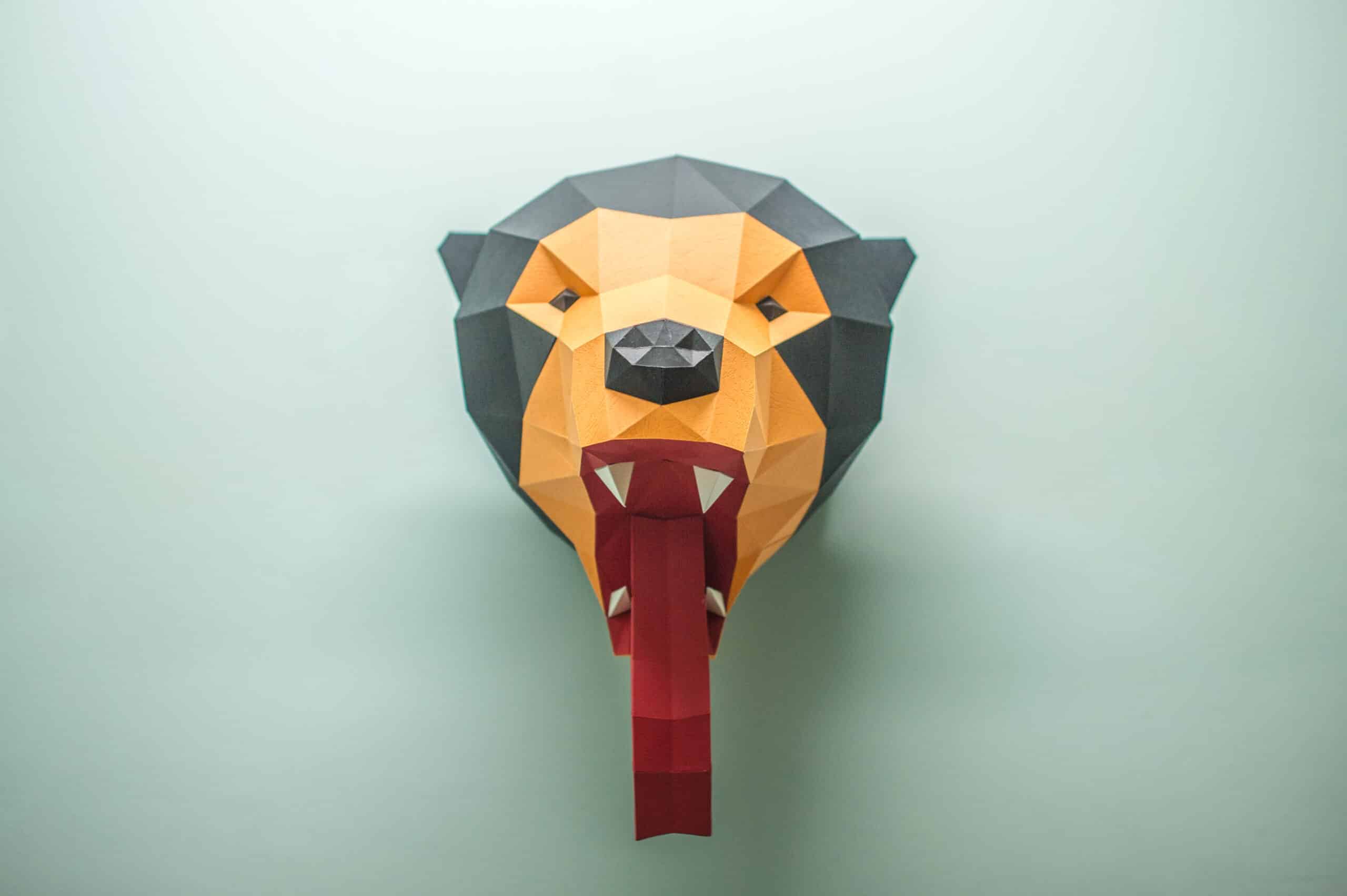 En las profundidades de las selvas tropicales del sudeste asiático, se oculta el majestuoso oso malayo. Con nuestro kit papercraft cabeza de oso malayo en origami, puedes traer esta criatura exótica directamente a tu hogar. Cada pliegue y cada corte transformará simples hojas de papel en una impresionante obra de arte tridimensional. Este modelo Low Poly es ideal para los amantes de los animales raros y para quienes buscan añadir un toque salvaje y original a su decoración de pared. Descubre más creaciones fascinantes en nuestra colección de trofeos decorativos.