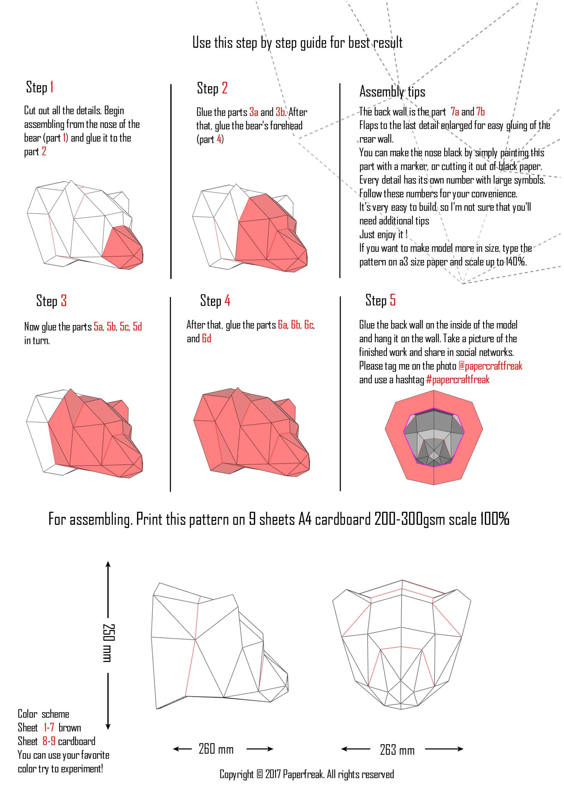 Características técnicas del papercraft cabeza de trofeo de oso en origami 3D
