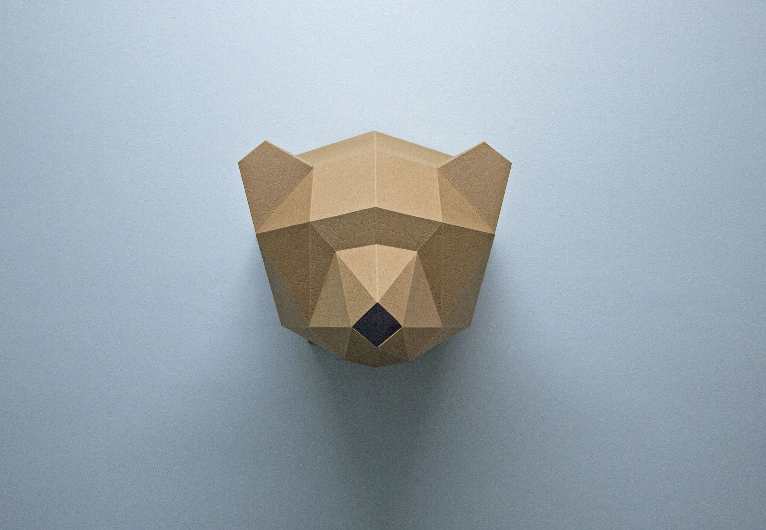 Kit papercraft cabeza de trofeo de oso en origami 3D: digital o box completa