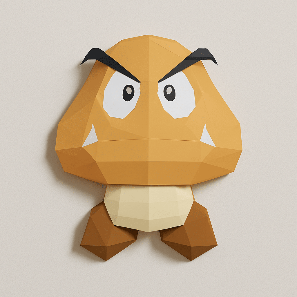 Basta una mirada para volver al Reino Champiñón. Con este Goomba en origami 3D, das forma a uno de los enemigos más famosos del universo Mario. Colocado en una estantería o en un escritorio, atrae todas las miradas, divierte y provoca inevitablemente una sonrisa. Cada pliegue y cada pegado transforman poco a poco simples hojas en una auténtica escultura de papel.