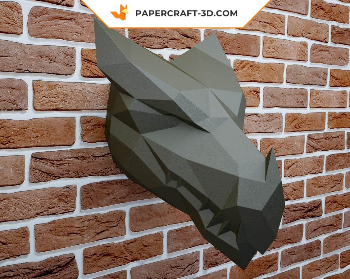 Papercraft de cabeza de dragón negro en origami 3D: un trofeo único para tu hogar