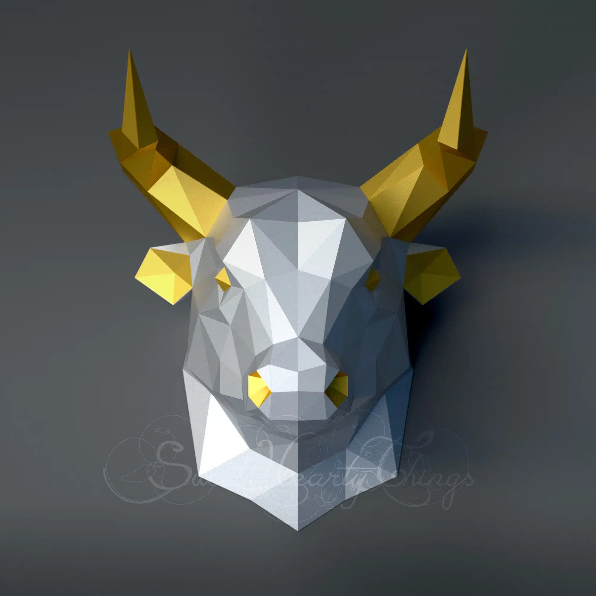 Kit papercraft cabeza de toro en origami: dos formatos disponibles