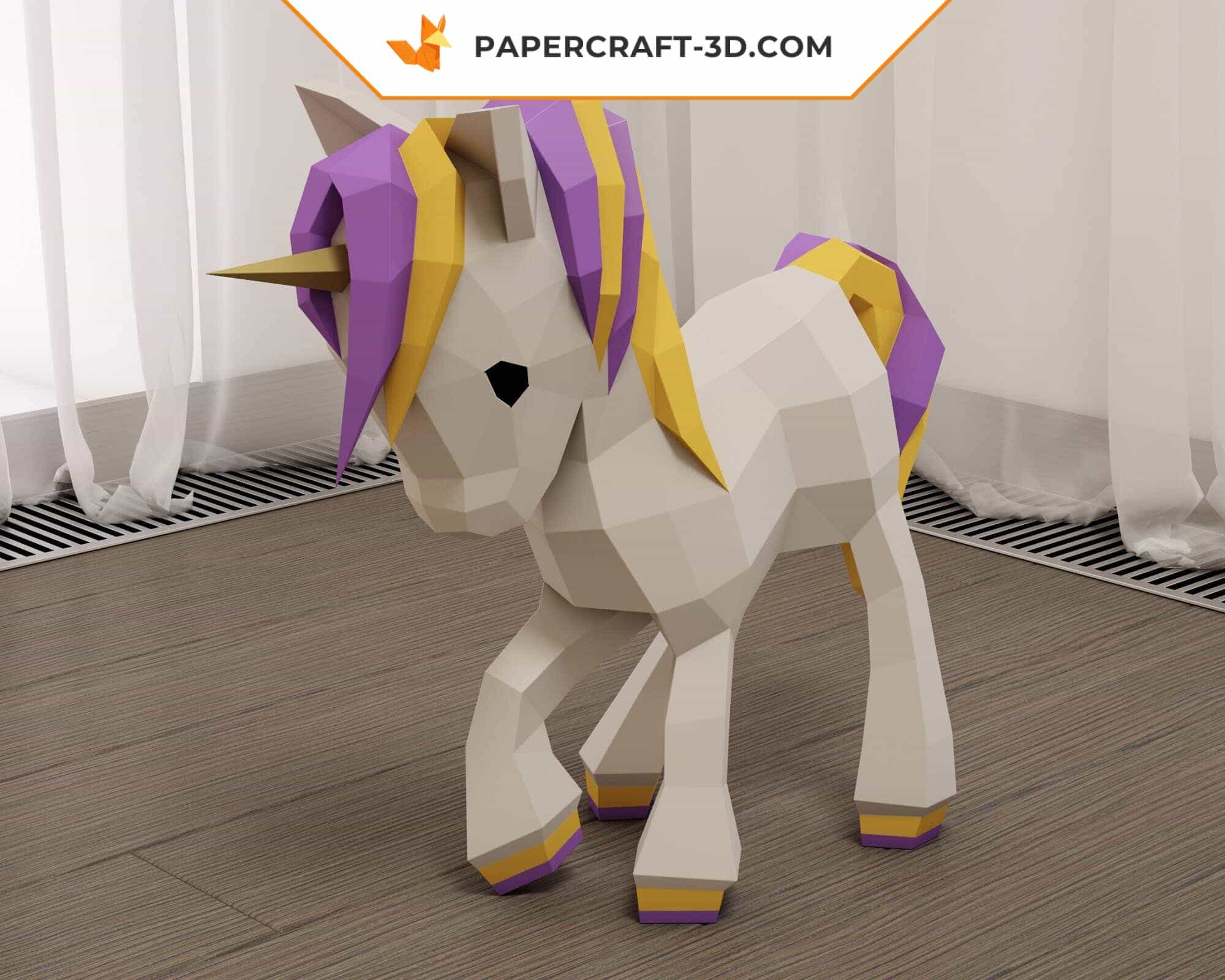 Papercraft bebé unicornio en origami 3D: kit digital o caja completa