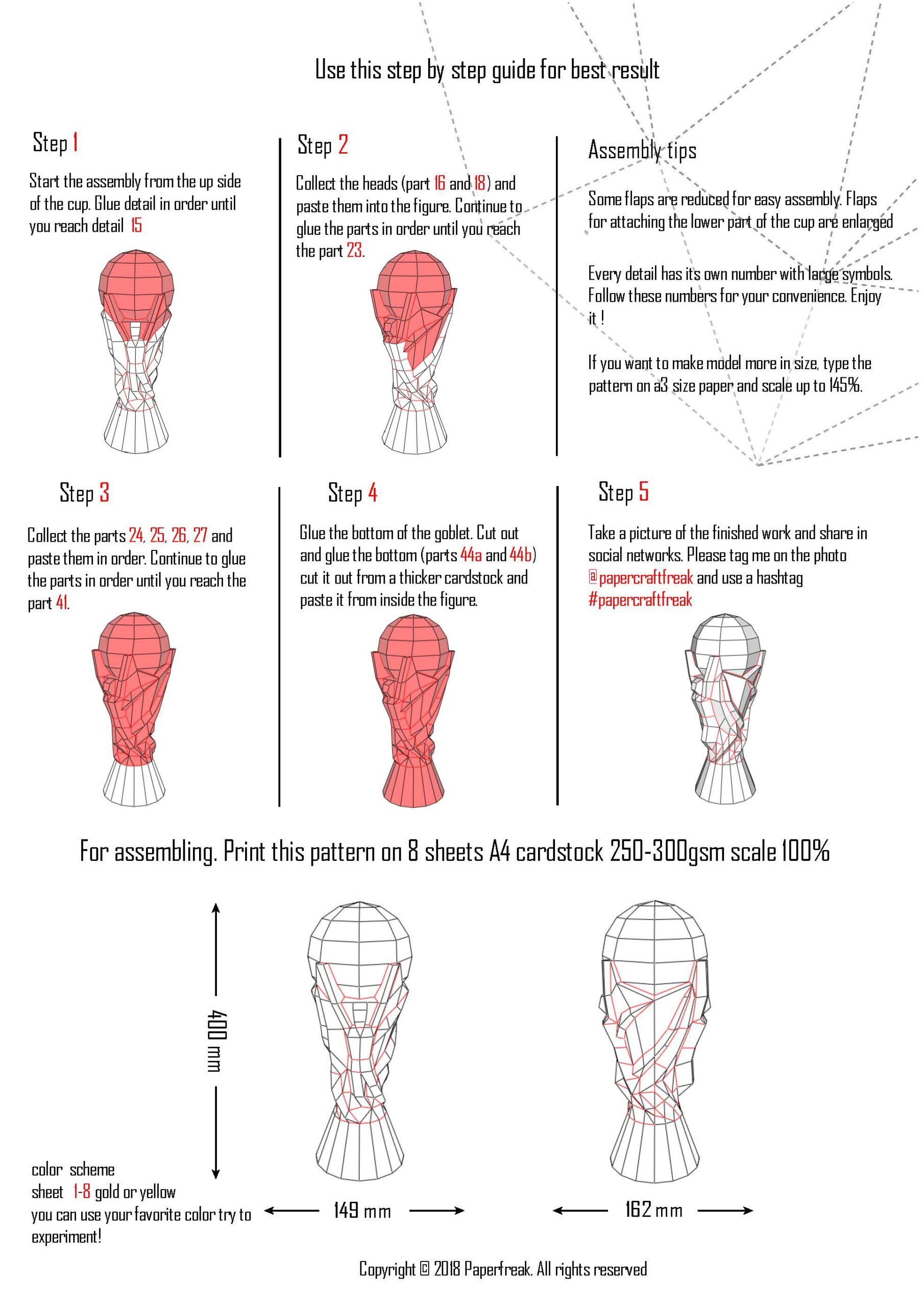 Características del modelo kit trofeo de fútbol en papercraft 3D