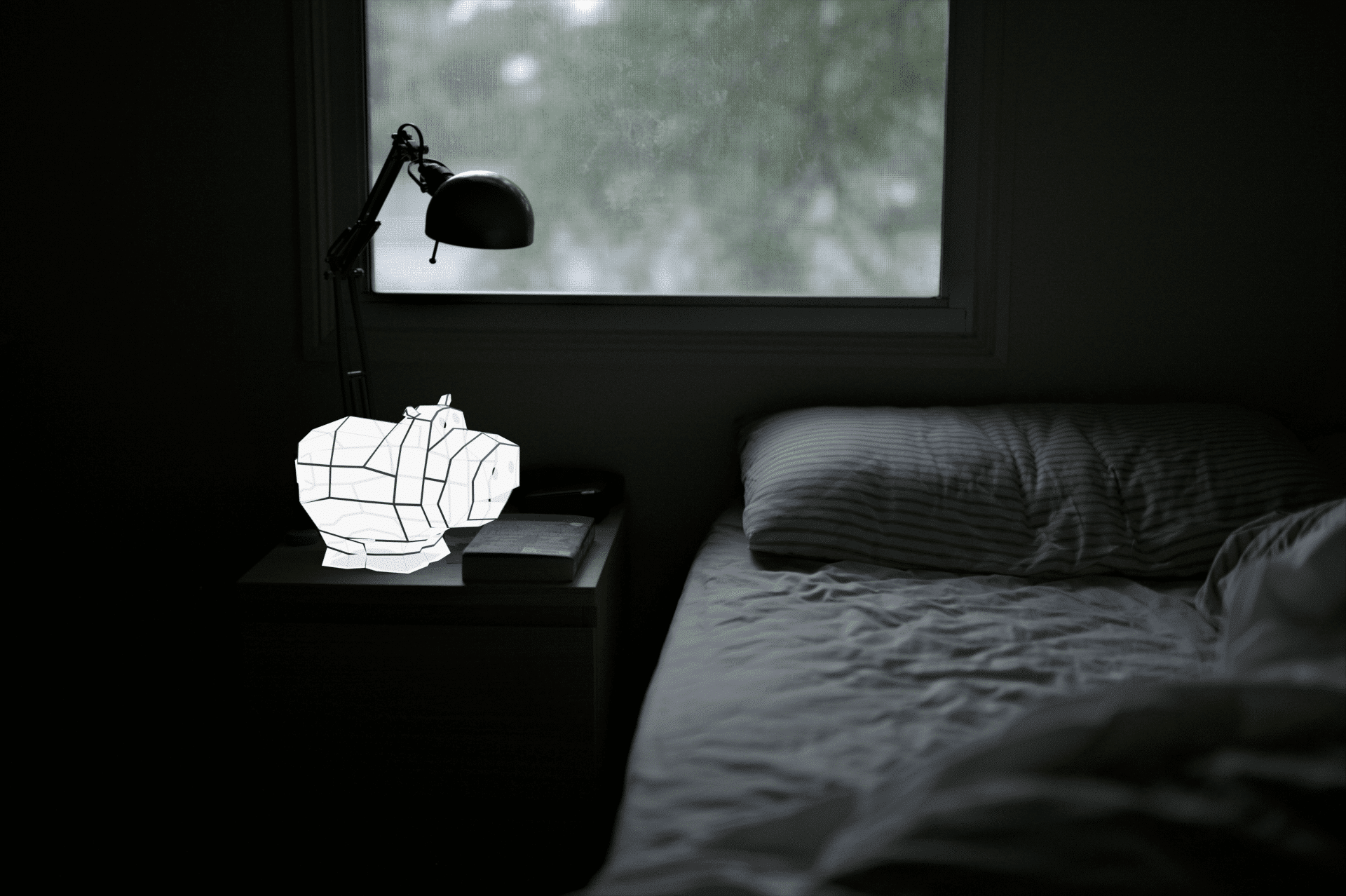 Une lampe low-poly attachante qui diffuse une lueur douce et homogène. Posée sur la table de chevet, elle crée instantanément une ambiance apaisante pour la lecture du soir ou la chambre d’enfant. Éteinte, sa silhouette facettée reste une pièce déco graphique et moderne.