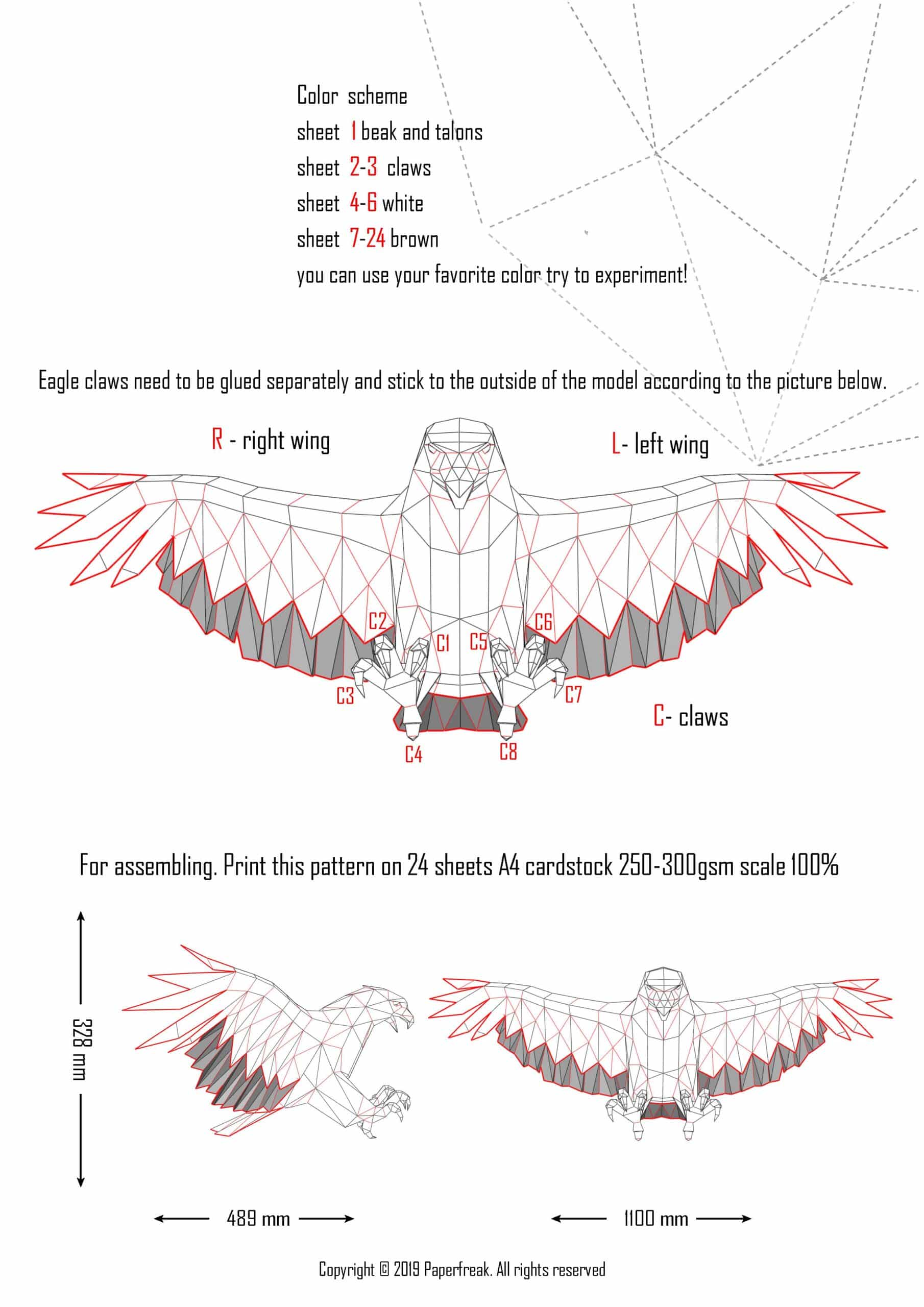 Caratteristiche tecniche del papercraft di aquila volante in origami 3D