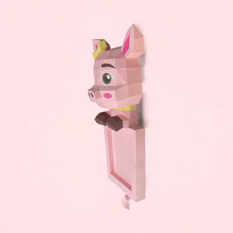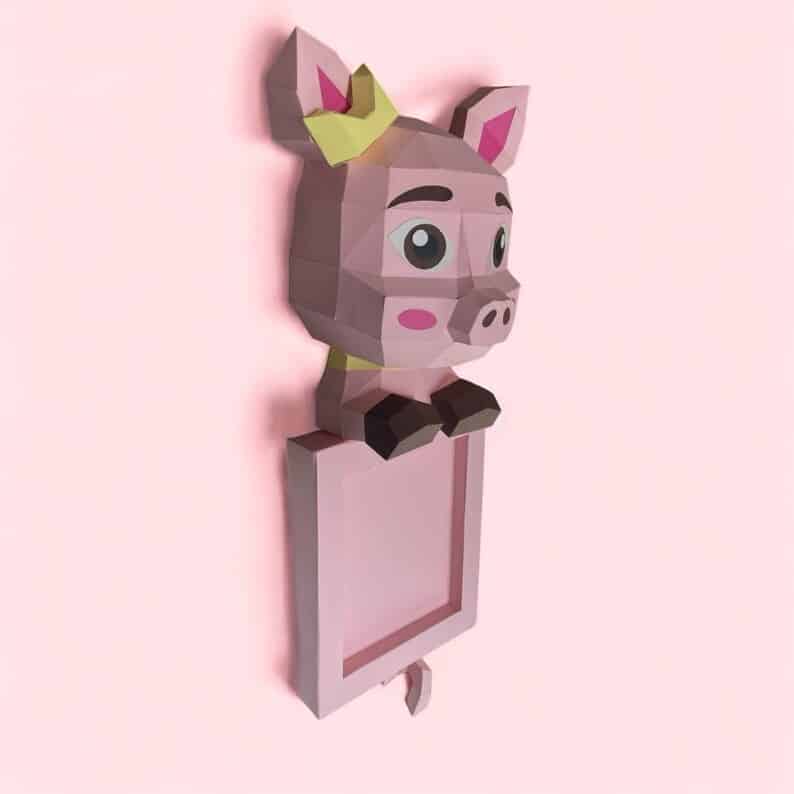 Papercraft di cornice con testa di maiale in origami: disponibile in kit digitale o box completa