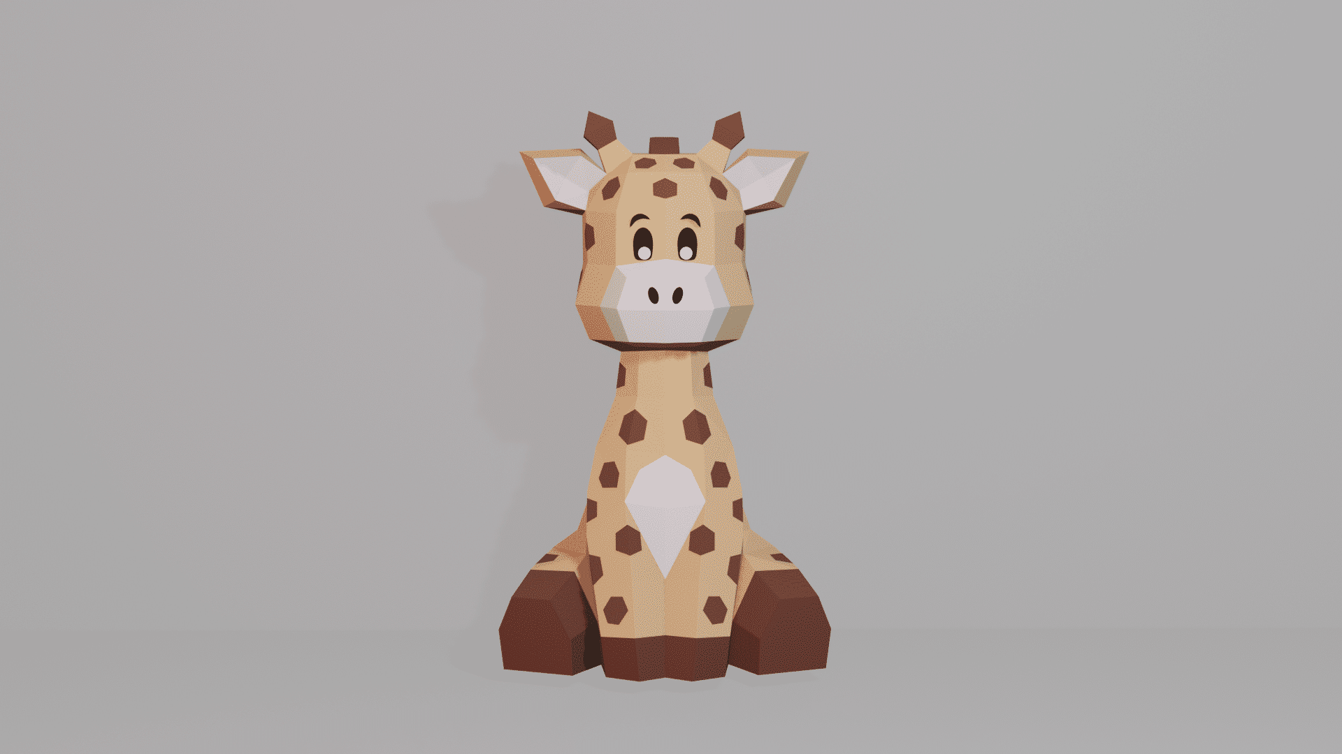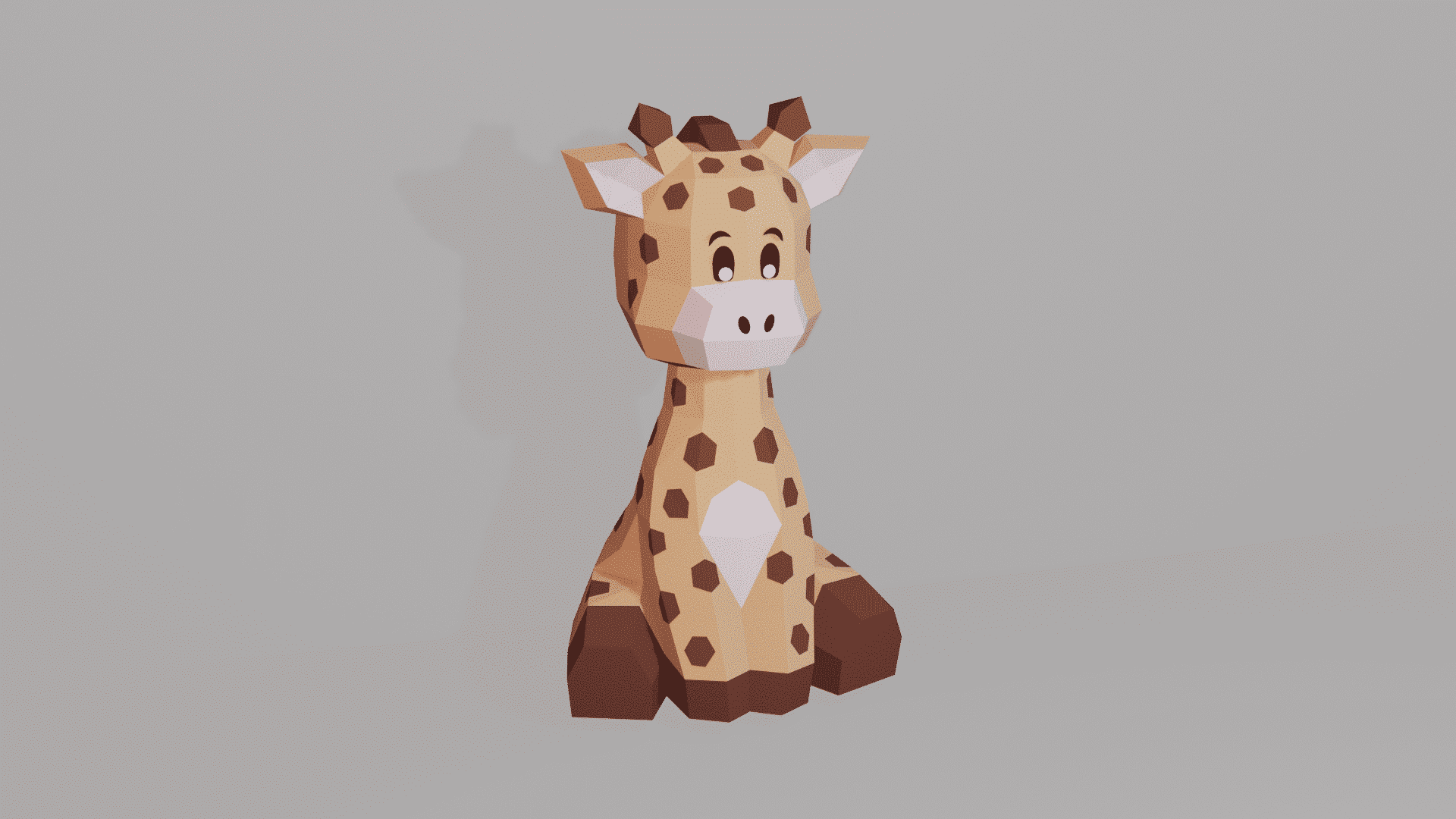 Girafa bebé in papercraft 3D da assemblare — Dimensioni: 430 x 256 x 247 mm • 16 pagine A4 da stampare con istruzioni per bambini.
