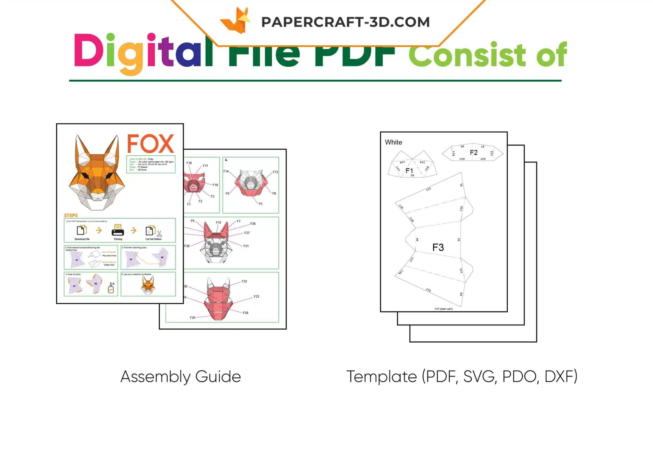 Due formati disponibili per il papercraft di maschera di volpe in origami 3D
