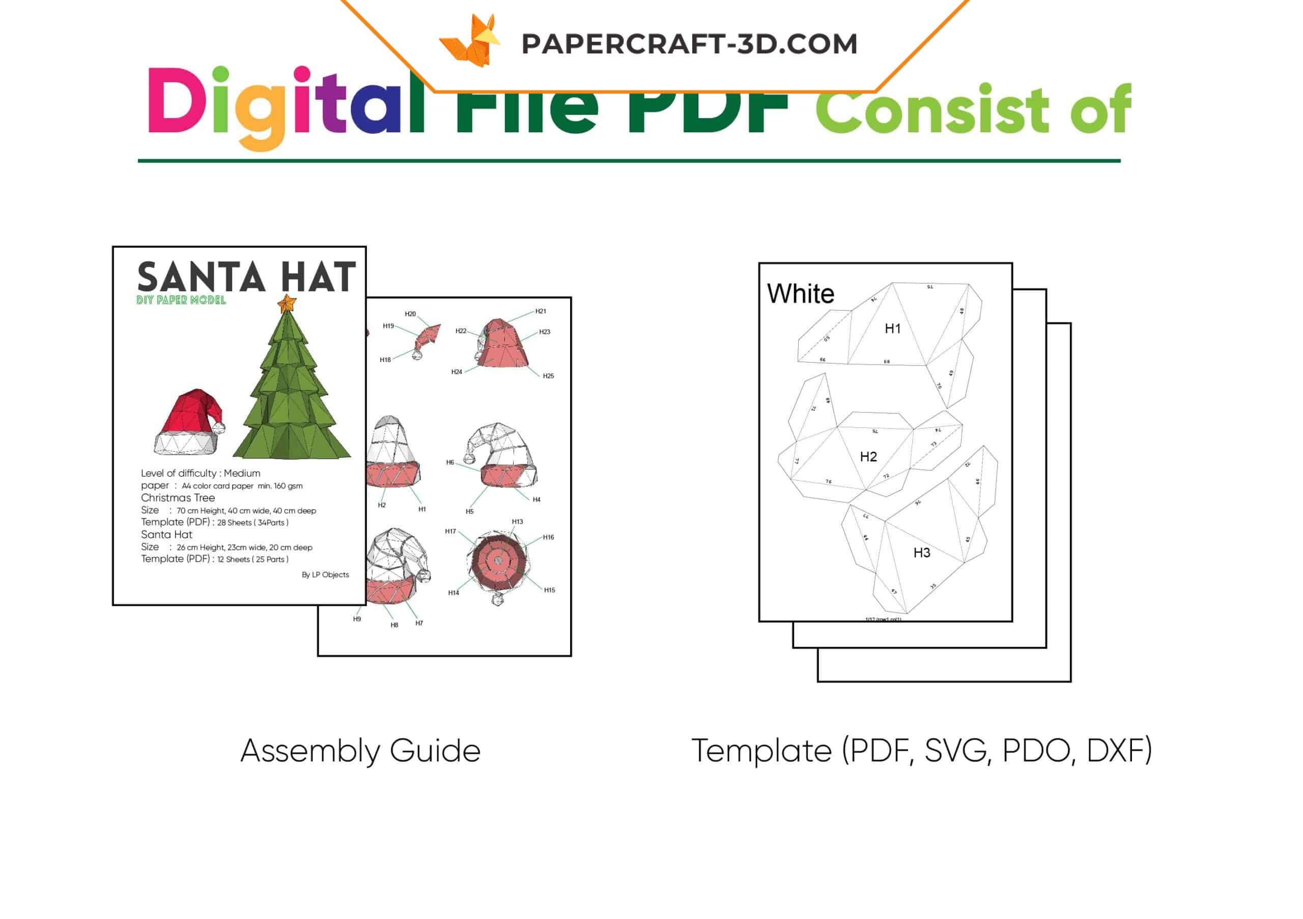 Kit papercraft arbre de Noël et chapeau en origami 3D : deux formats disponibles