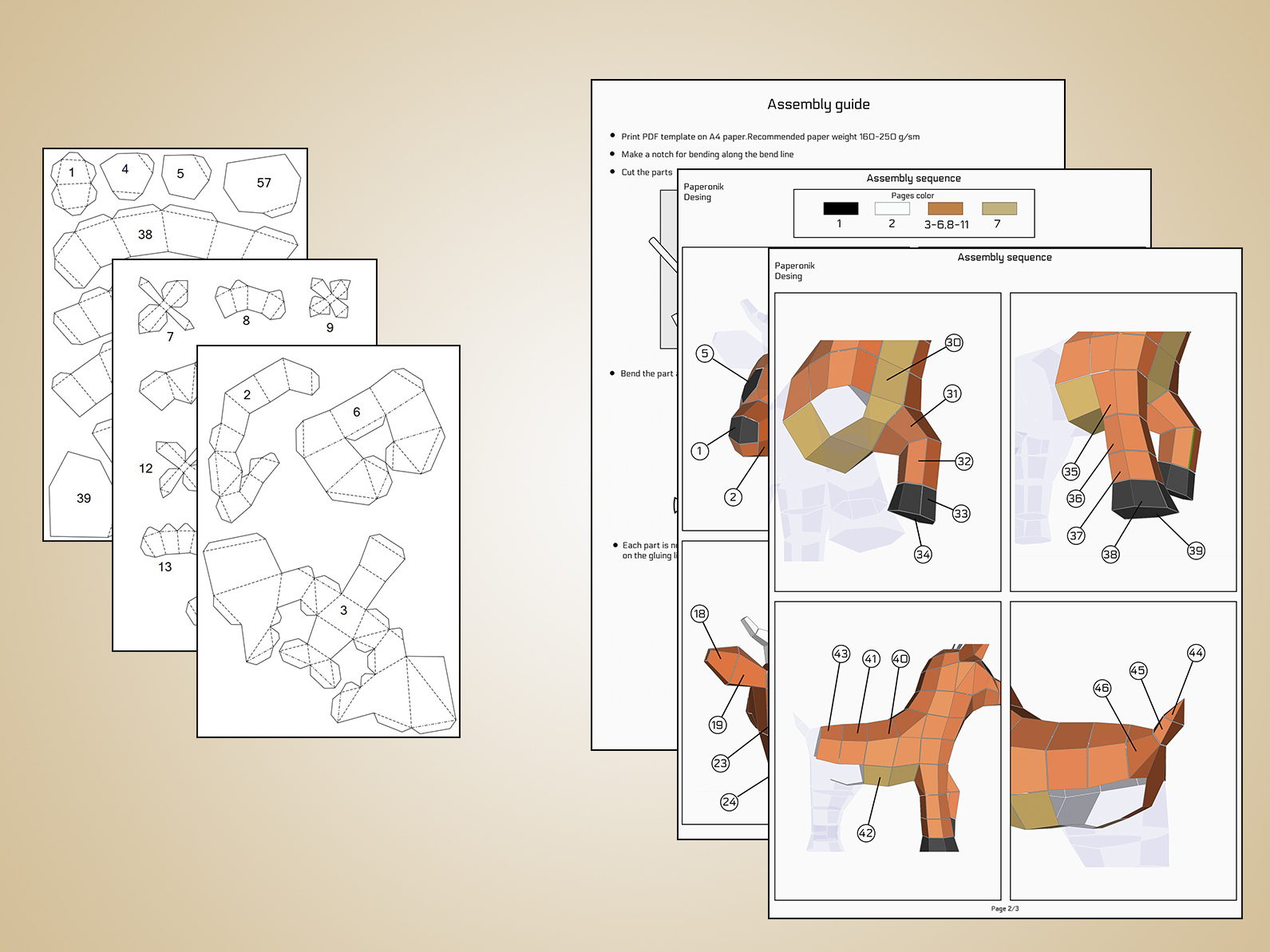 Immagina di passeggiare in una foresta incantata, quando improvvisamente un piccolo cervo dai colori vivaci appare davanti a te. Con il nostro kit di papercraft, puoi portare a casa questa magia e creare il tuo cervo cartoon in origami 3D. Ogni dettaglio di questo adorabile cervo è stato meticolosamente progettato per offrire un’esperienza creativa unica e divertente. Perfetto per decorare la tua casa o per fare un regalo speciale, questo modello non passerà inosservato.