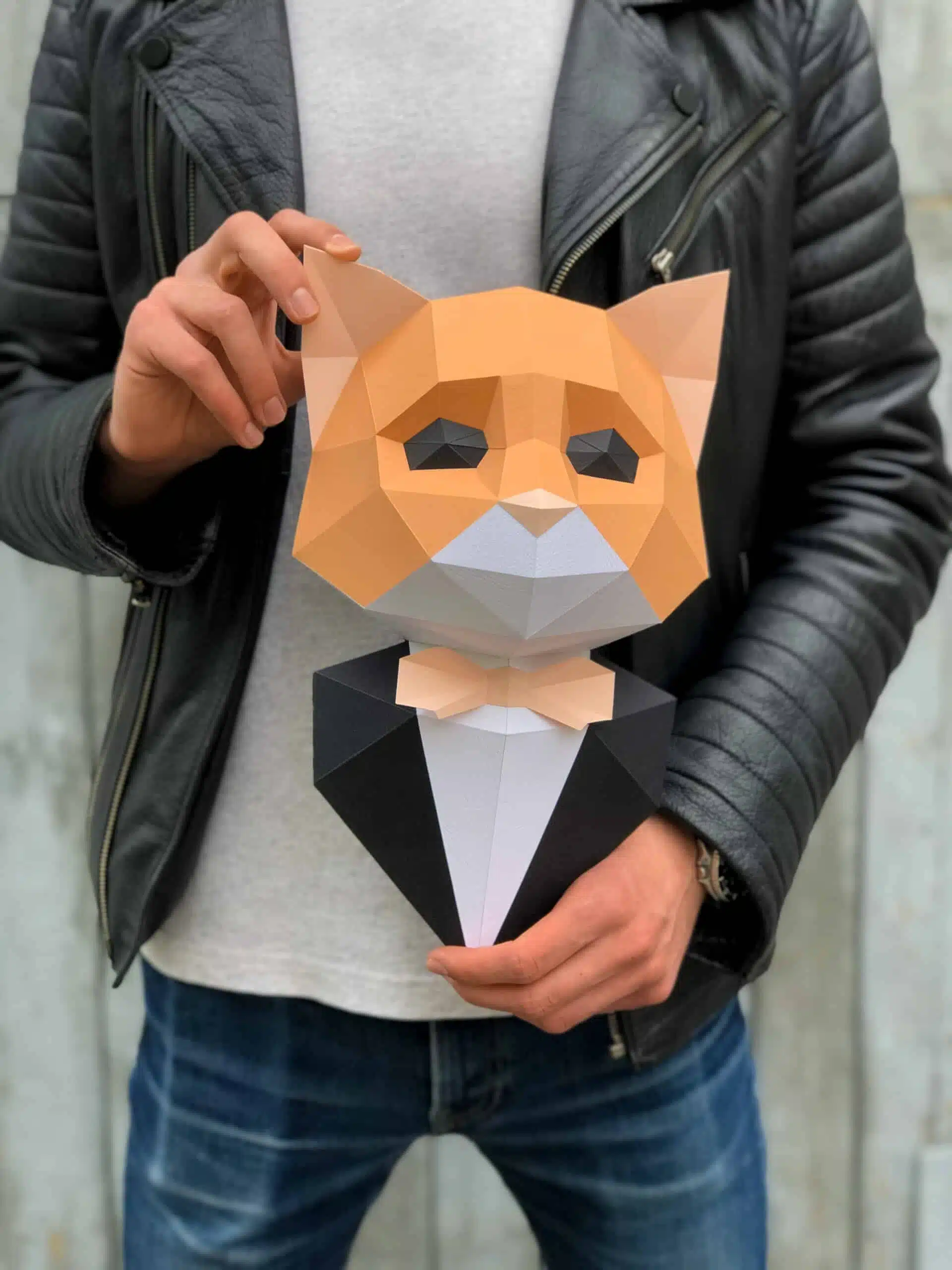 Un raffinato micio in giacca e cravatta per arricchire il tuo spazio. Non capita tutti i giorni di incontrare un gatto con un abito impeccabile, pronto a rubare la scena! Con questo kit papercraft 3D, puoi creare un affascinante gentiluomo felino. I dettagli curati – cravatta ben annodata, risvolti perfetti e portamento distinto – lo rendono un elemento unico per la tua decorazione o collezione. Questo progetto creativo e rilassante è perfetto per gli appassionati di origami 3D e attività manuali.