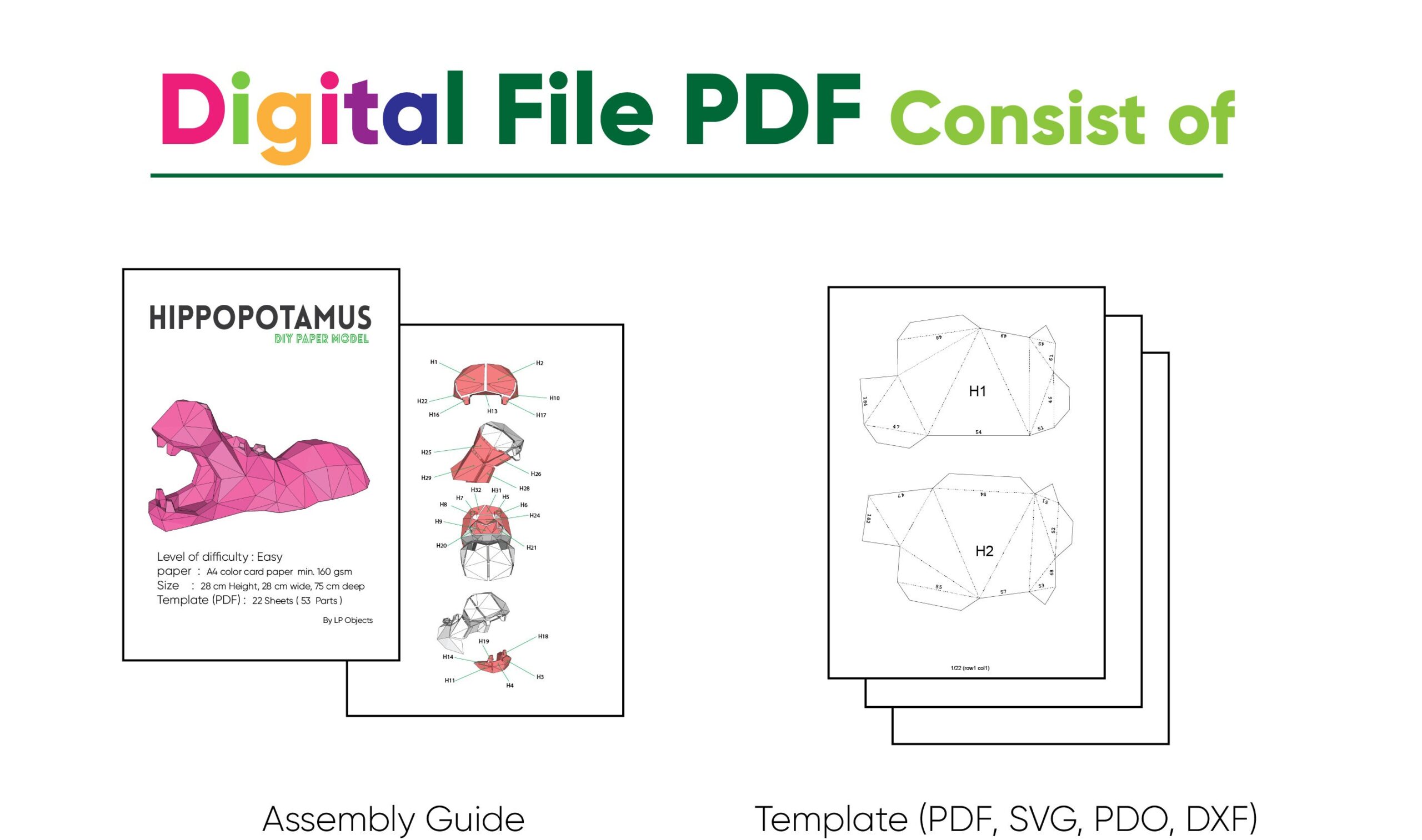 Dai vita alla tua creatività con questo straordinario ippopotamo in papercraft. Perfetto per decorare il tuo salotto o la tua scrivania, è un’attività ideale per gli amanti dell’arte manuale, i genitori alla ricerca di progetti creativi per i bambini o chi desidera aggiungere un tocco esotico alla propria casa. Scegli subito il tuo formato preferito e inizia questa avventura artistica!