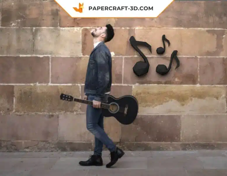 Immergiti nel mondo melodioso del papercraft con il nostro modello unico di note musicali in origami 3D. Immagina di trovarti nel tuo spazio creativo, assemblando con facilità questi delicati simboli musicali. Ogni nota, minuziosamente dettagliata, apporterà un tocco artistico e musicale alla tua decorazione d’interni. È un’avventura affascinante dove l’arte della carta incontra la passione per la musica, creando un’armonia perfetta tra creatività e melodia. Scopri altri modelli altrettanto ispiranti nella nostra collezione di origami 3D murali.