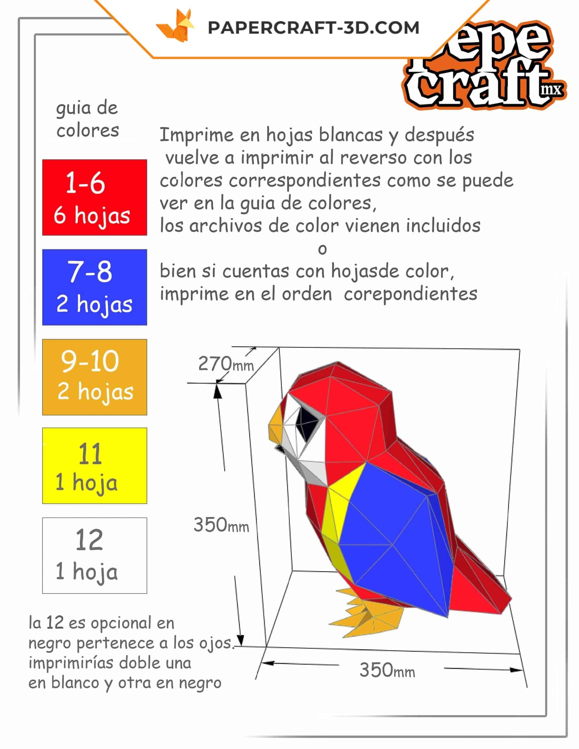 Caratteristiche tecniche del papercraft baby Ara in origami 3D