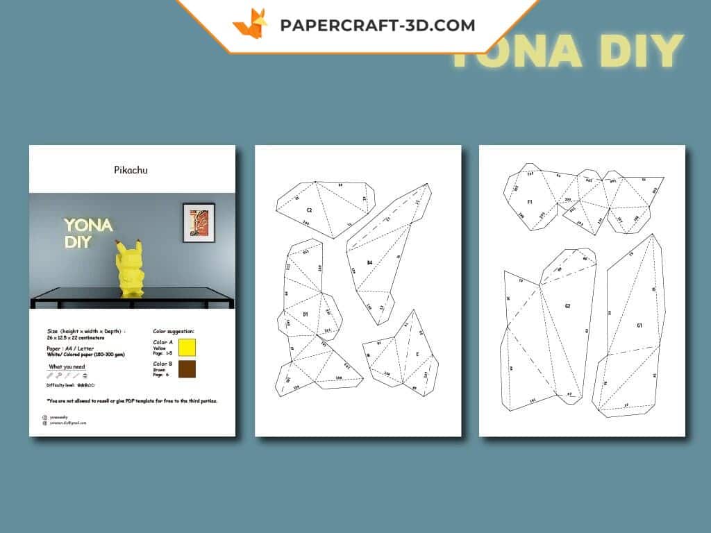 Caratteristiche tecniche del papercraft pikachu in origami 3d