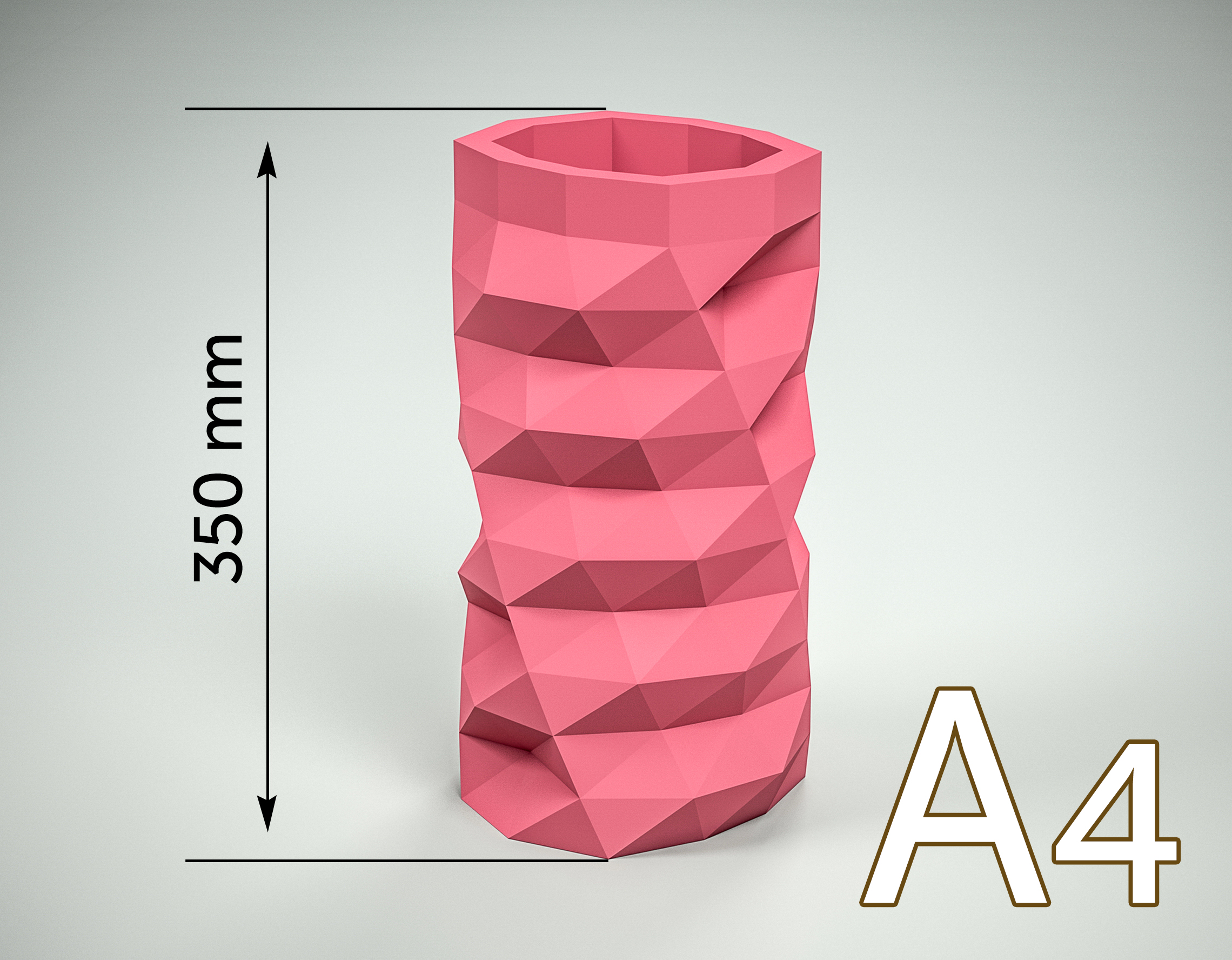 - Dimensioni finali: 350 x 188 x 188 mm (stampato su 8 fogli A4)