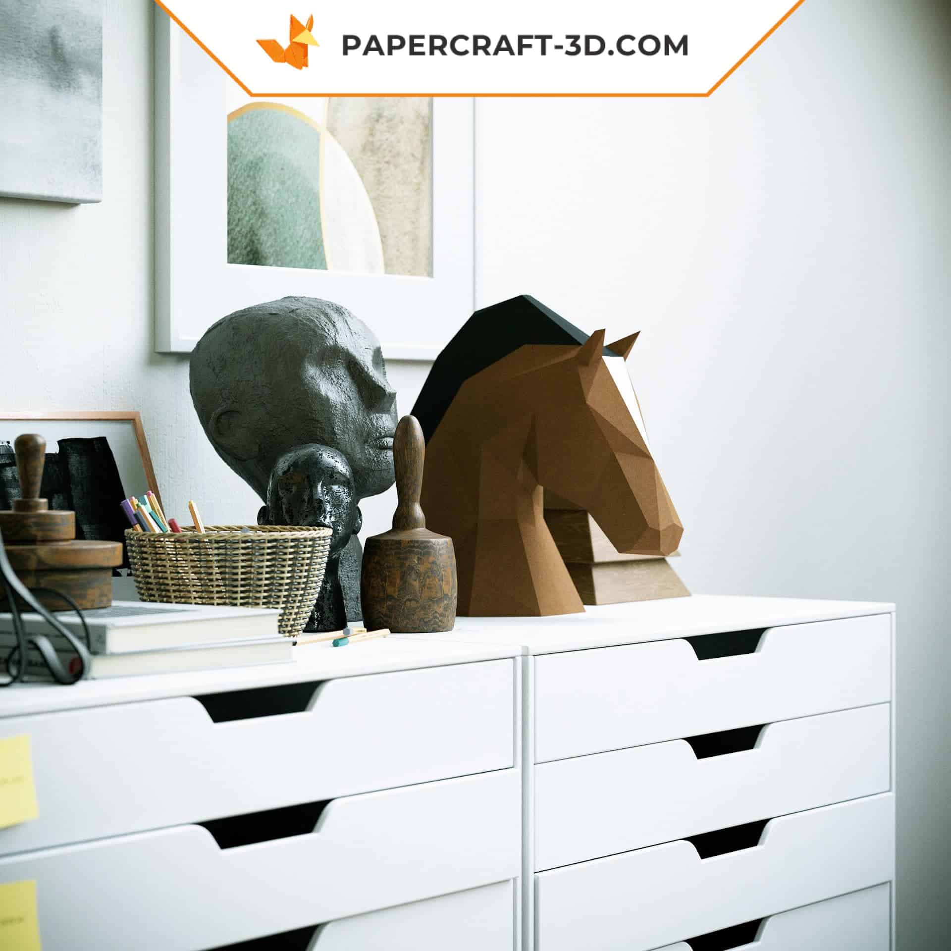 Immergiti in un universo creativo dove la carta si trasforma in vere e proprie opere d’arte. Con il kit papercraft testa di cavallo in origami 3D, avrai l’opportunità di realizzare un pezzo unico e raffinato. Bastano tre semplici passaggi – taglia, piega e incolla – per dare vita a una maestosa testa di cavallo che catturerà l’attenzione e l’ammirazione di chiunque la veda. Un complemento d’arredo elegante, perfetto per arricchire ogni spazio con un tocco di originalità e design. Scopri altri modelli straordinari nella nostra collezione completa di origami 3D da esporre.