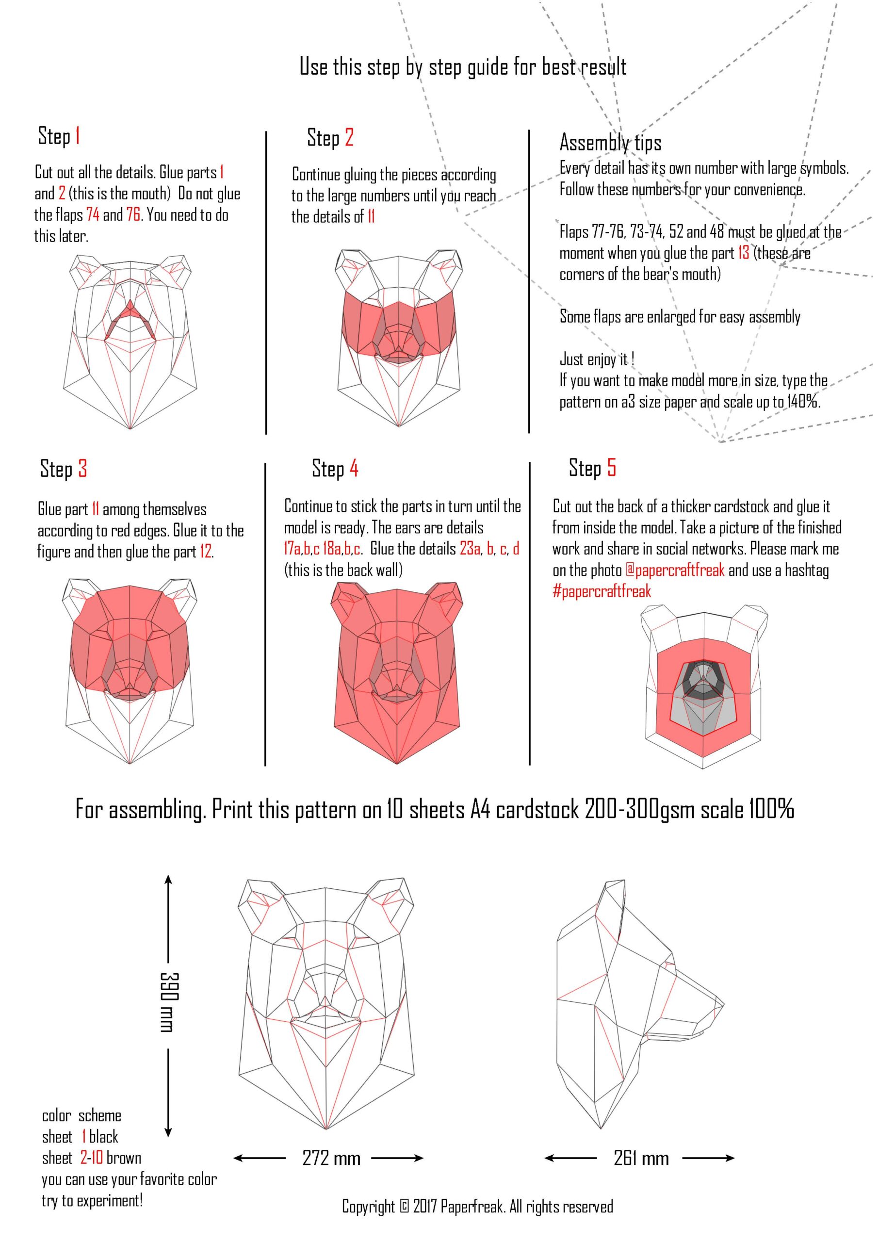 Caratteristiche tecniche del papercraft testa d’orso in 3D