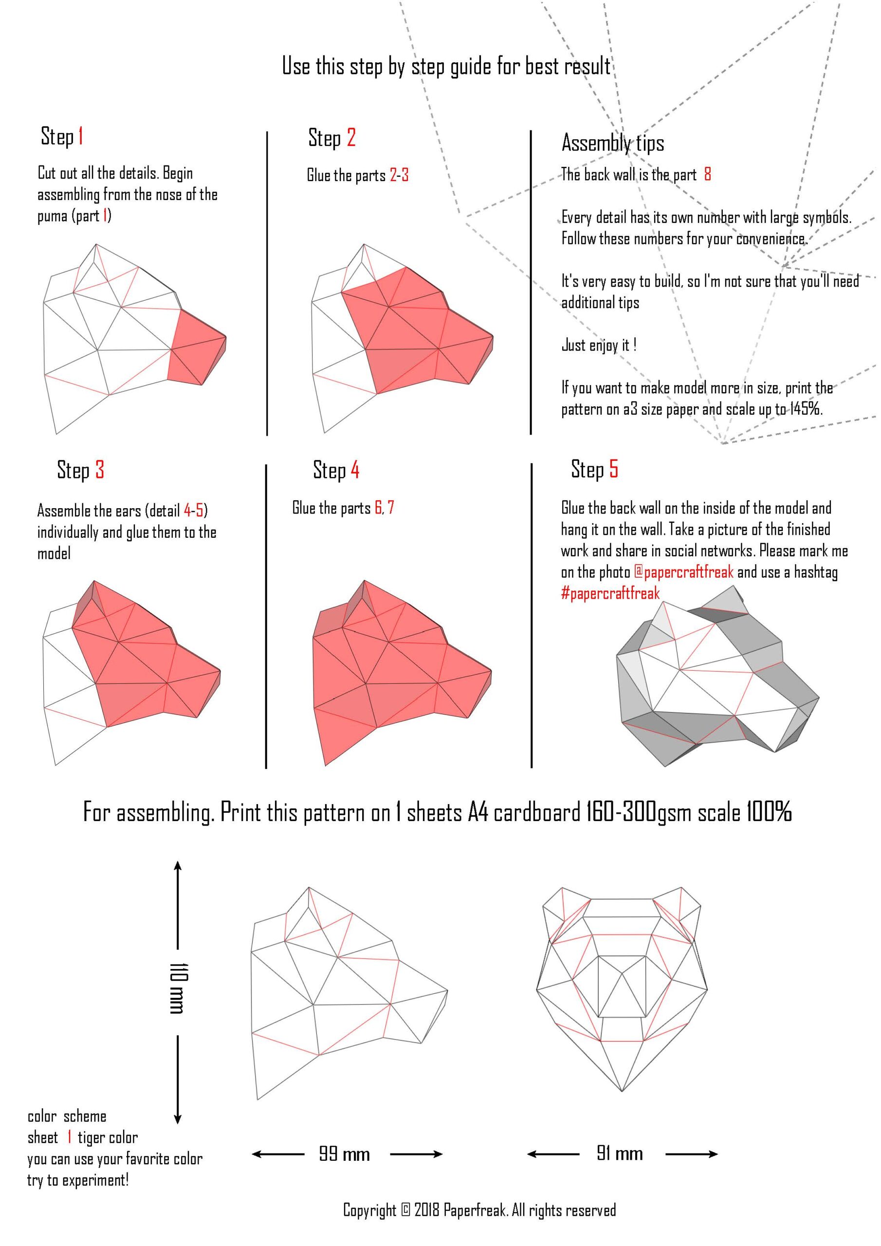 Lasciati ispirare dalla maestosità del puma e personalizza il tuo papercraft scegliendo colori originali o sperimentando diverse dimensioni stampando su formato A3. Con questo modello, il tuo spazio acquisterà carattere e originalità. Che aspetti? Inizia subito a creare il tuo capolavoro in carta!