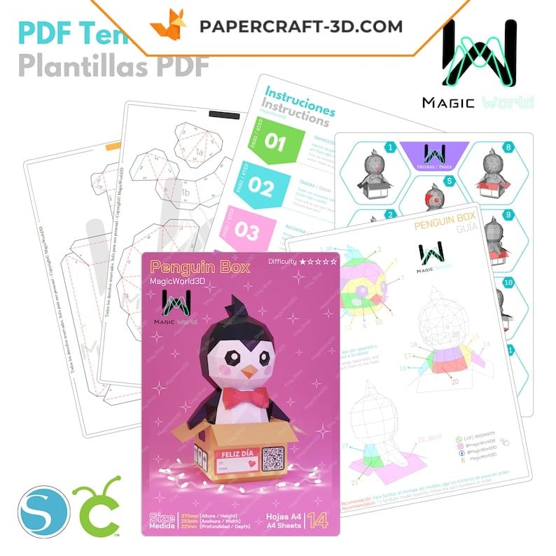 Que vous optiez pour le format PDF à télécharger ou la box complète avec tous les accessoires nécessaires, ce kit de papercraft boîte pingouin en origami vous offre tout ce dont vous avez besoin pour créer une œuvre d’art en papier. Le modèle inclut des fichiers PDF, Studio3 et SVG, ainsi qu’un tutoriel vidéo pour guider chaque étape de l’assemblage.