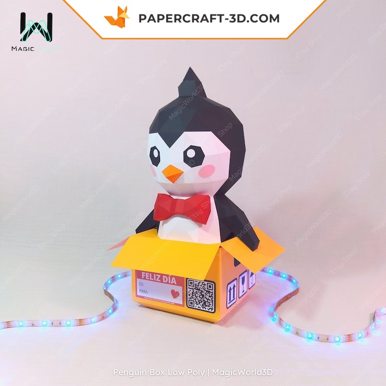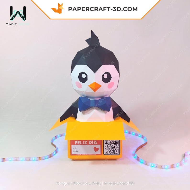 Papercraft boîte pingouin en origami : kit digital ou box complète