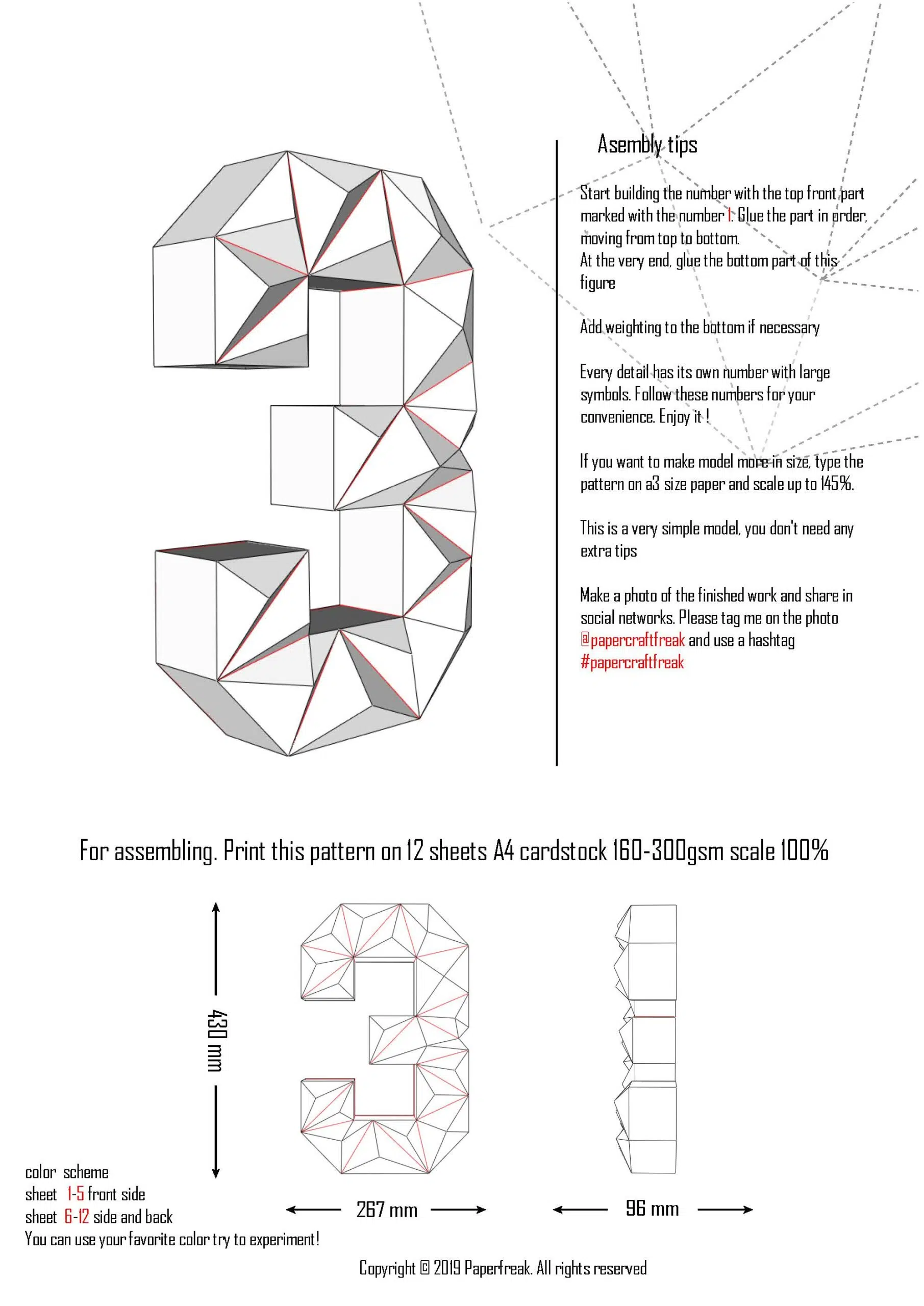 Apportez une touche unique à vos fêtes avec ce chiffre 3 en papercraft 3D, à assembler soi-même. Ce modèle polygonal est parfait pour un anniversaire, une sweet table, une vitrine ou un décor de chambre d’enfant.