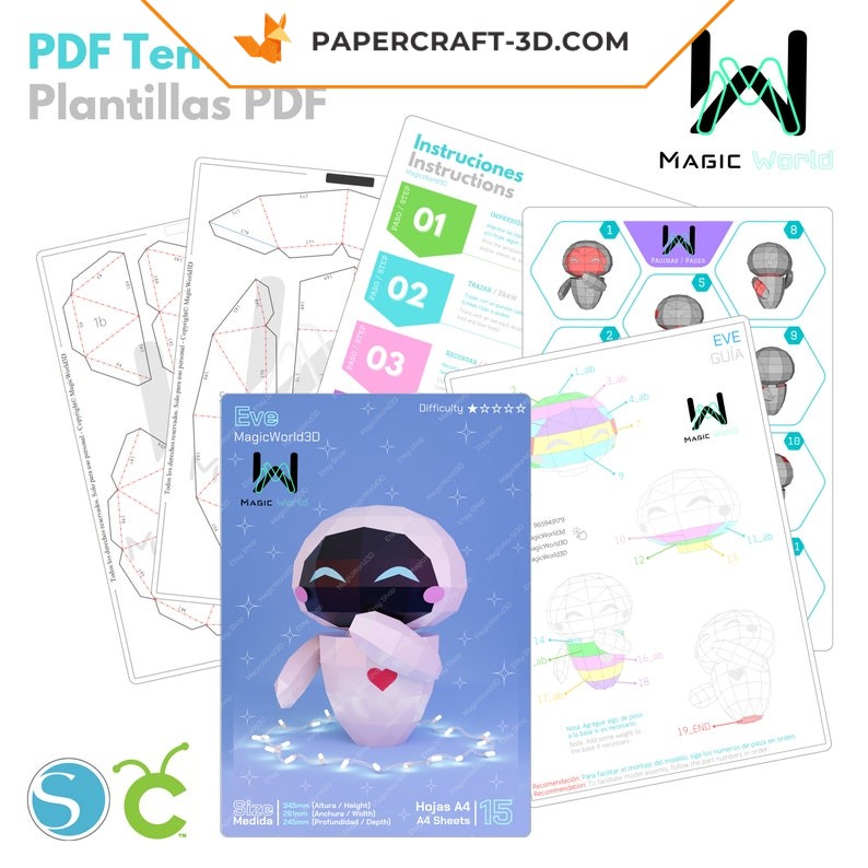 Que vous préfériez télécharger immédiatement le modèle en format PDF ou recevoir une box complète avec tout le nécessaire, notre papercraft d’Eve en origami 3D s’adapte à vos envies. Plongez-vous dans cette aventure DIY avec des instructions claires et détaillées, accompagnées d’un tutoriel vidéo pour un assemblage sans faille.