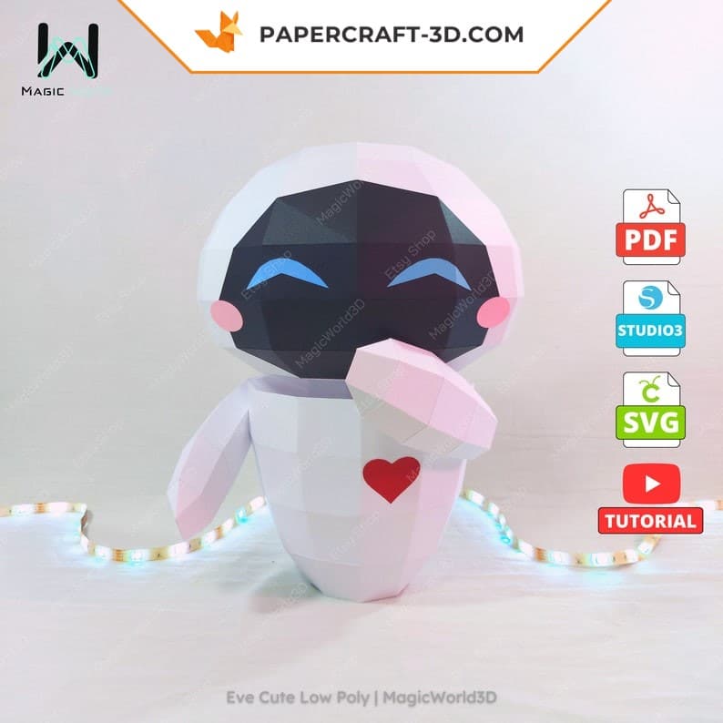 Imaginez-vous dans un futur lointain, où la technologie et la nature coexistent harmonieusement. Vous découvrez alors Eve, le robot au design épuré et aux yeux expressifs, qui explore ce monde fascinant. Avec notre papercraft d’Eve en origami 3D, vous pouvez recréer cette scène magique chez vous. Ce modèle est idéal pour les amateurs de loisirs créatifs, les fans de culture pop et les parents cherchant une activité ludique et éducative pour leurs enfants. Explorez notre collection de papercraft dessins animés pour découvrir d’autres personnages emblématiques.