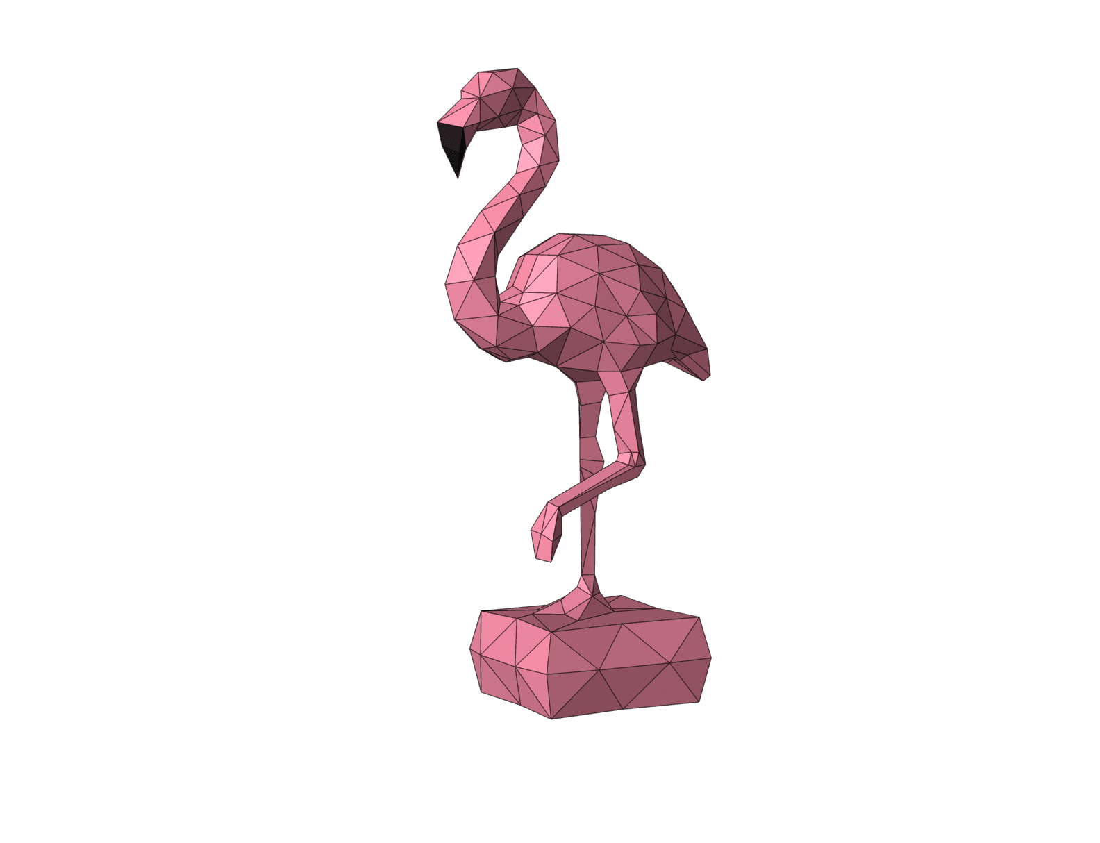 Apportez une touche estivale et exotique à votre décoration avec ce flamant rose en papercraft 3D à la silhouette élégante et stylisée. Ce modèle low poly, monté sur socle, attire immédiatement le regard par son design graphique et sa couleur vive.