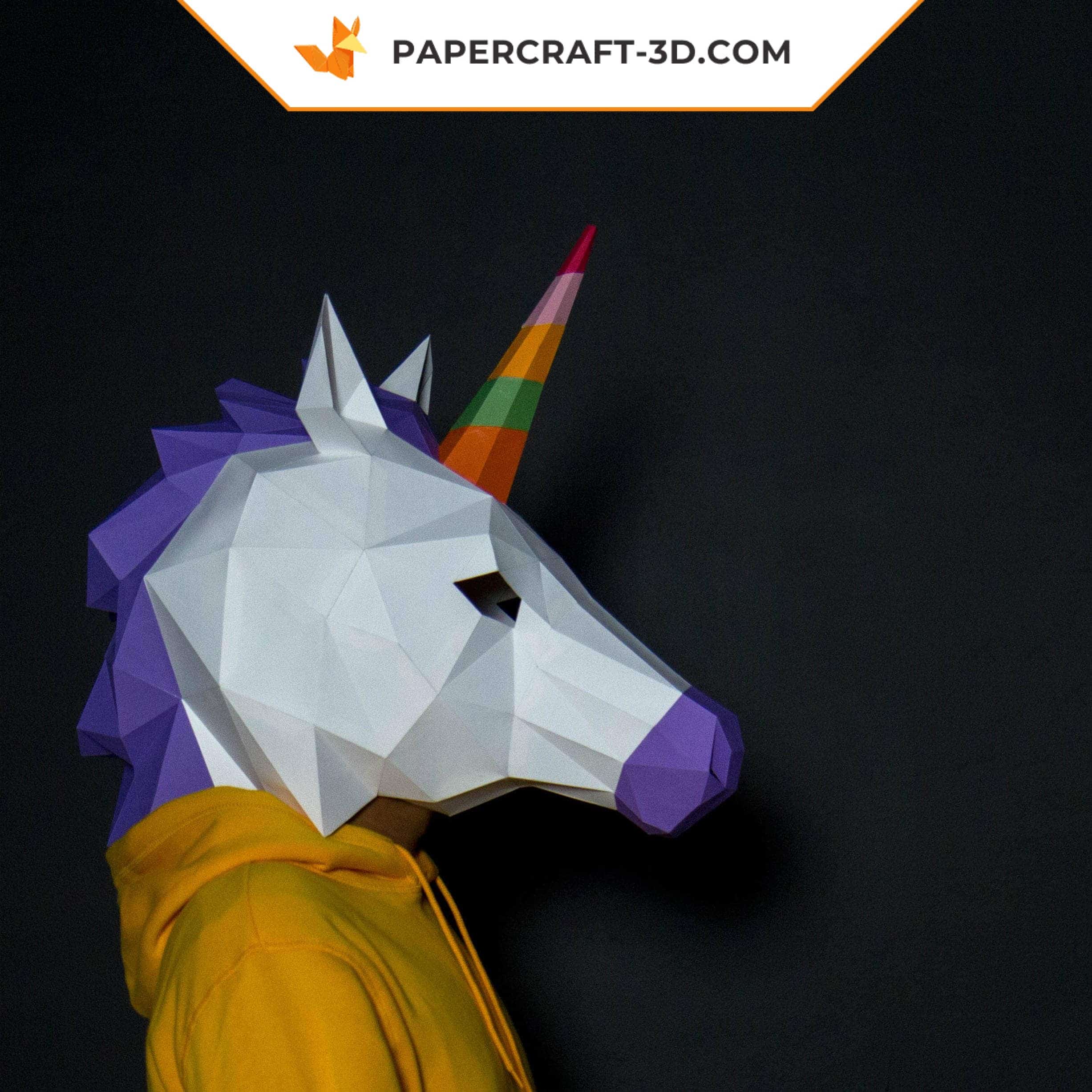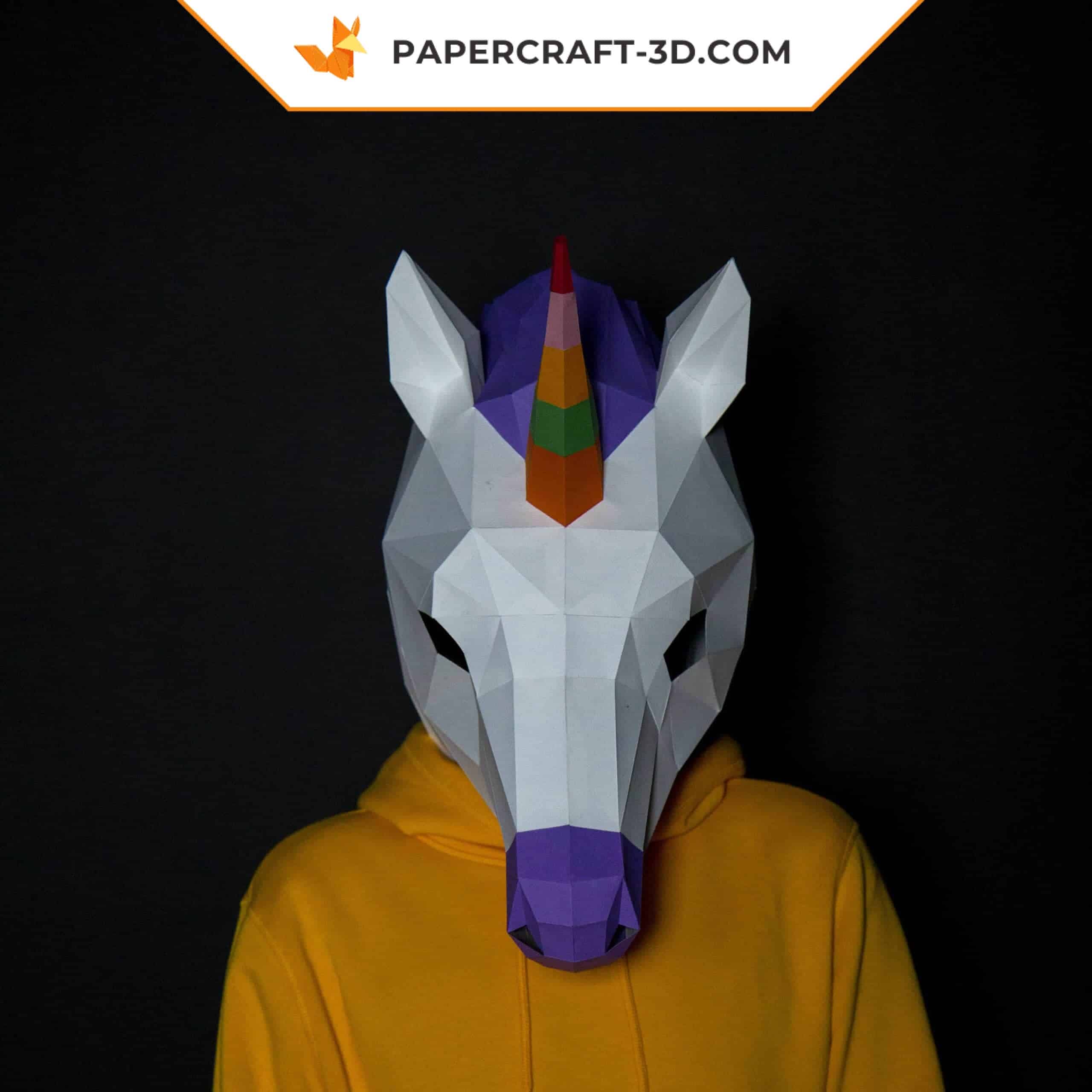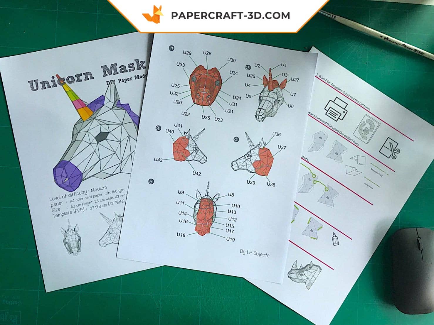 Papercraft de masque licorne en origami 3D : kit digital ou box complète