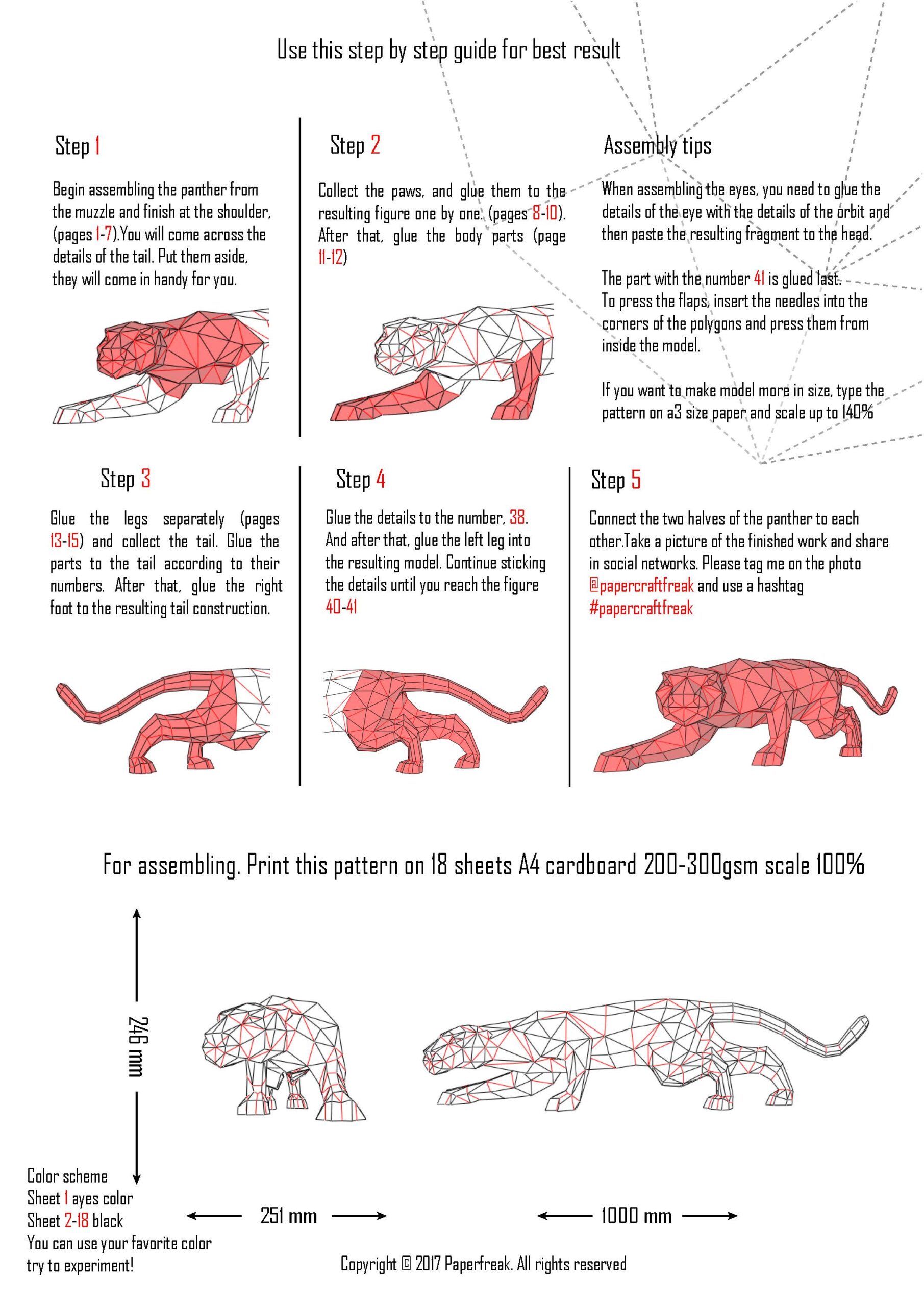 Donnez vie à cette panthère majestueuse et partagez votre création avec vos proches. Le papercraft 3D est une activité relaxante et satisfaisante, idéale pour les amateurs de loisirs créatifs et les décorateurs en quête d’objets uniques. Avec des instructions claires et un modèle captivant, ce kit d’origami est parfait pour tous les âges. N’attendez plus pour ajouter cette panthère en papercraft 3D à votre collection et laissez-vous emporter par l’aventure !
