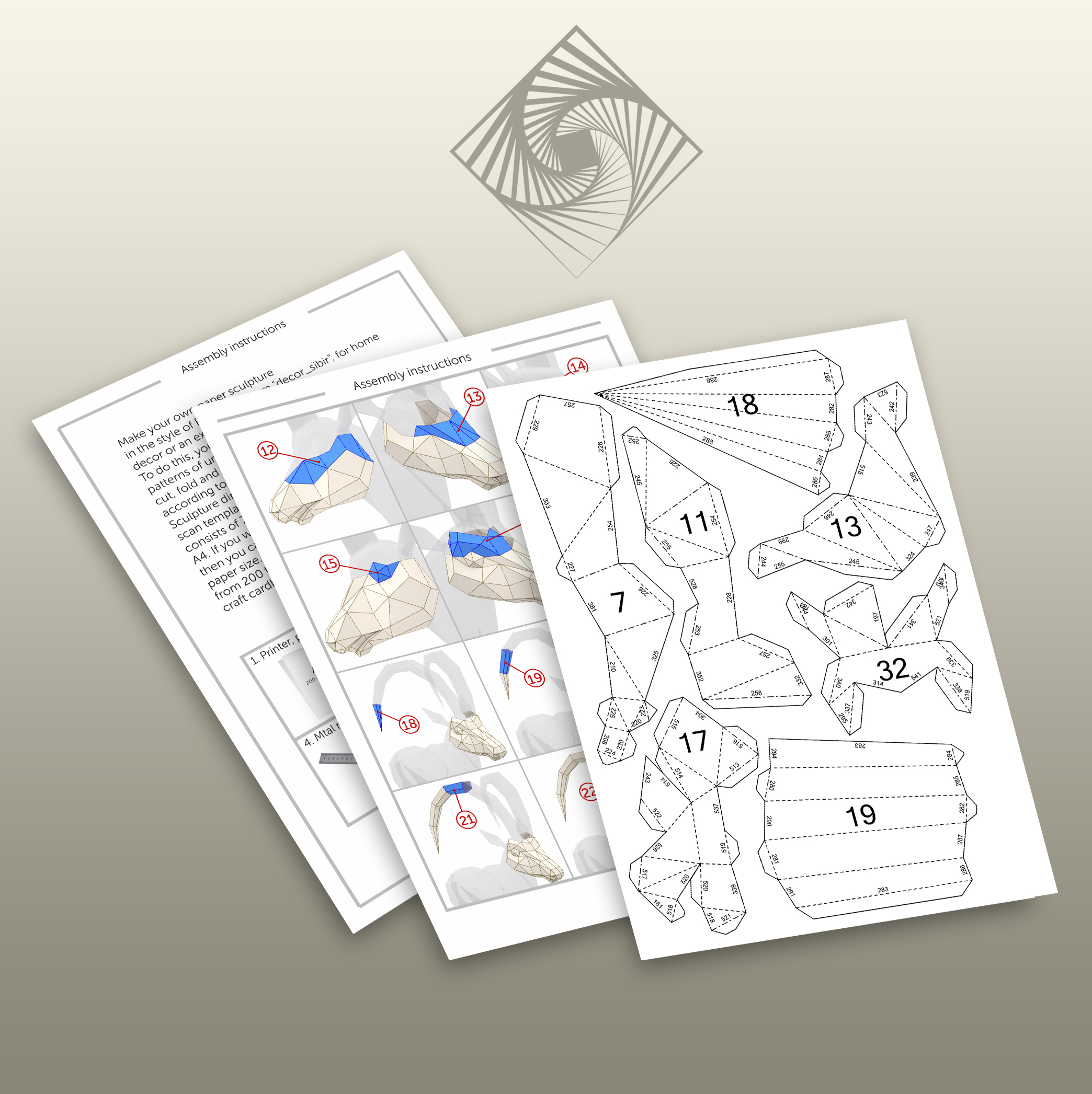 Papercraft de bouquetin à grandes cornes en origami 3D