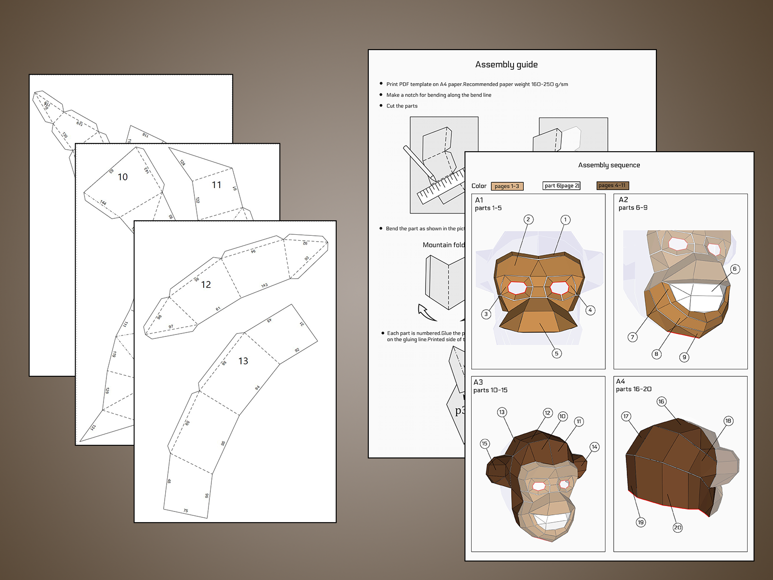 Caractéristiques techniques du papercraft de masque de singe en origami 3D