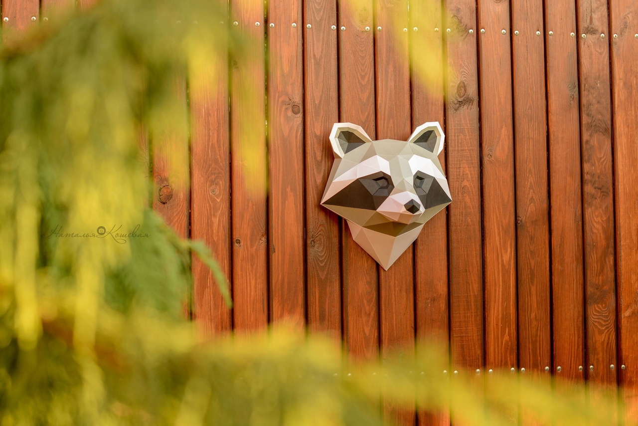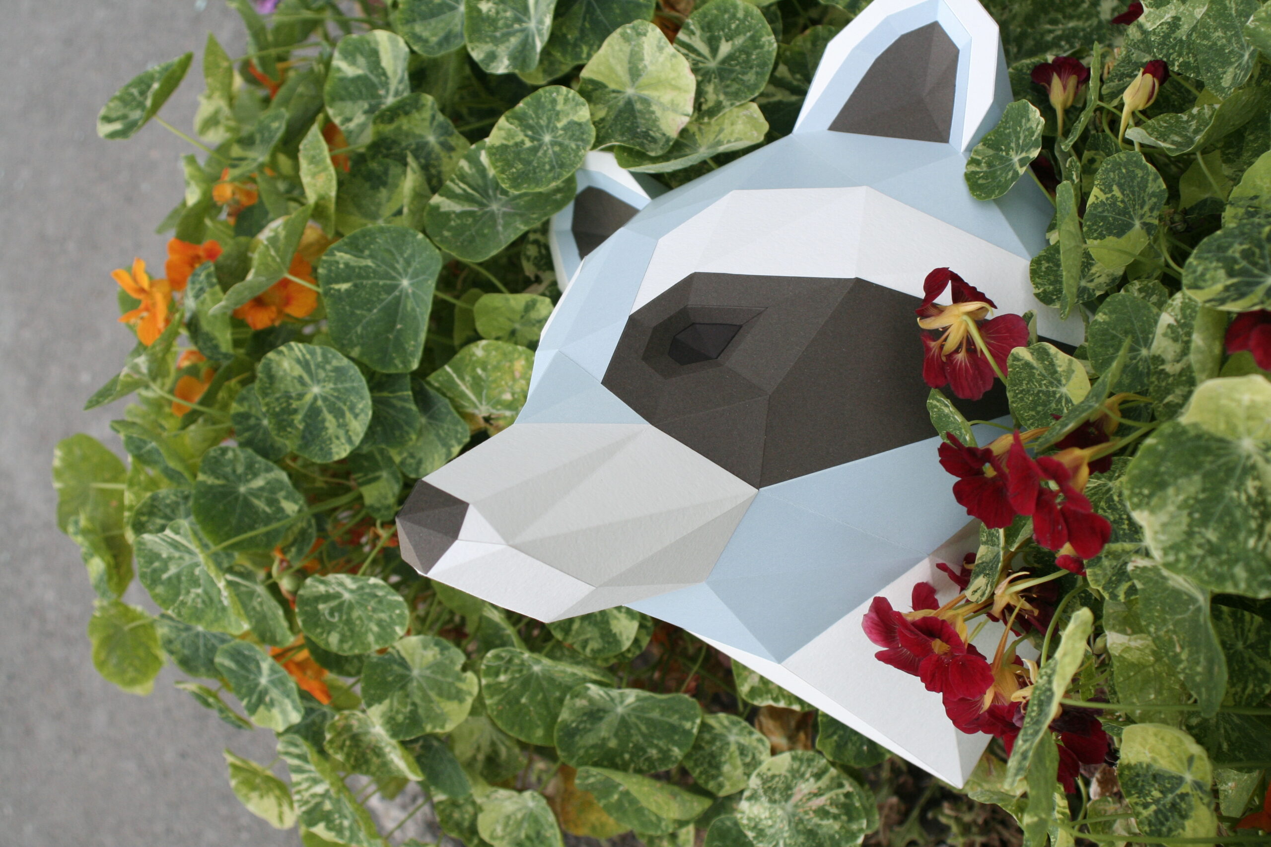 Papercraft de tête de raton laveur en origami 3D : kit digital ou box complète