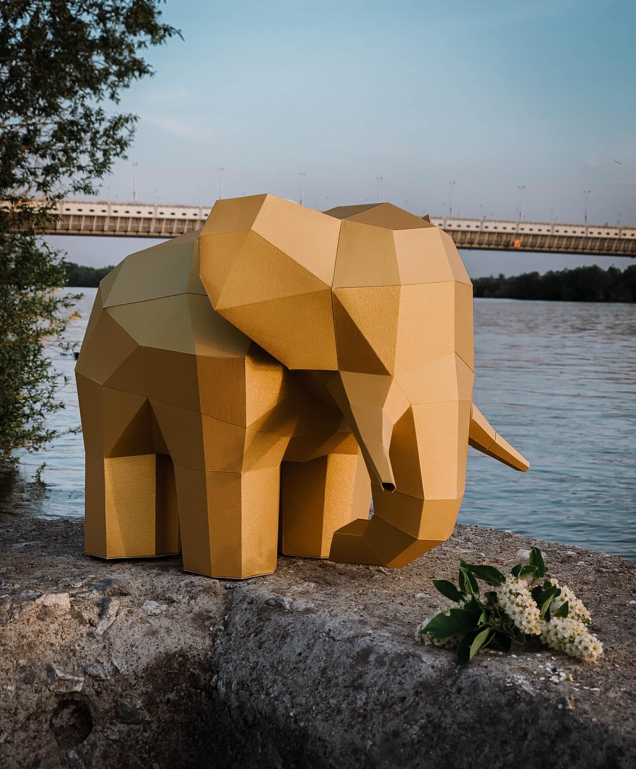 Papercraft éléphant en origami 3D : kit digital ou box complète