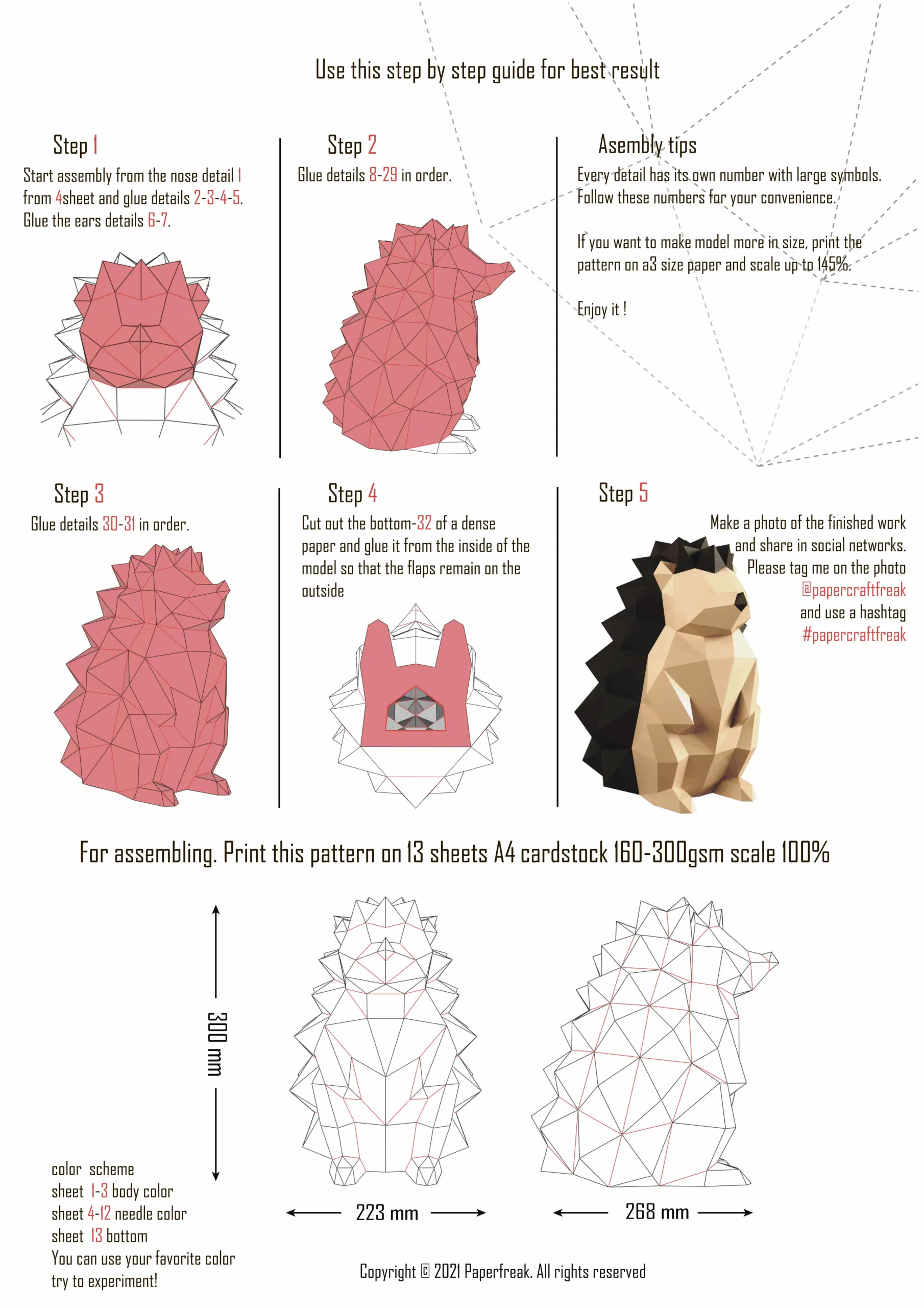 Caractéristiques techniques du papercraft de hérisson en origami 3D