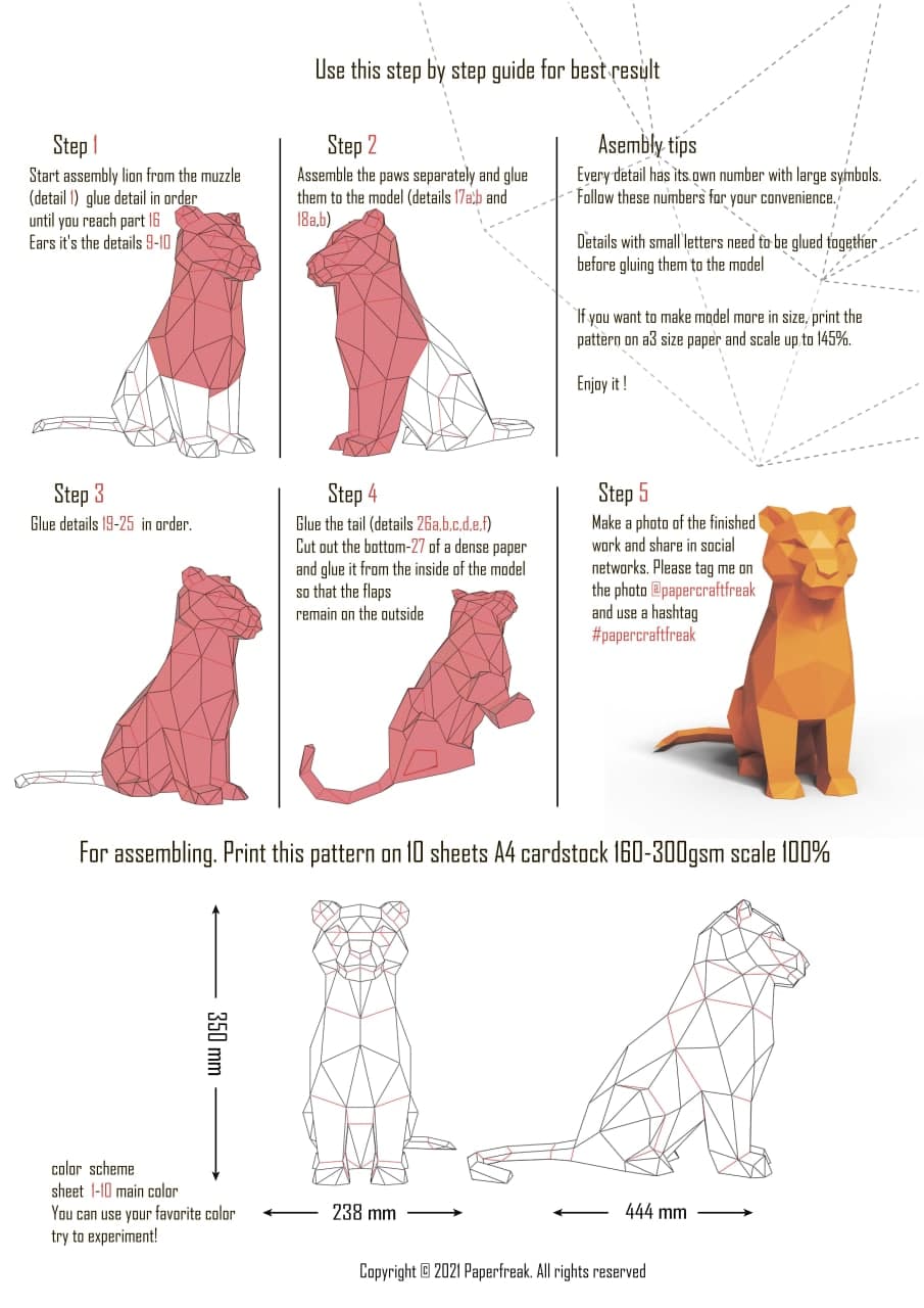 Caractéristiques techniques : papercraft de lion ou tigre en origami 3D