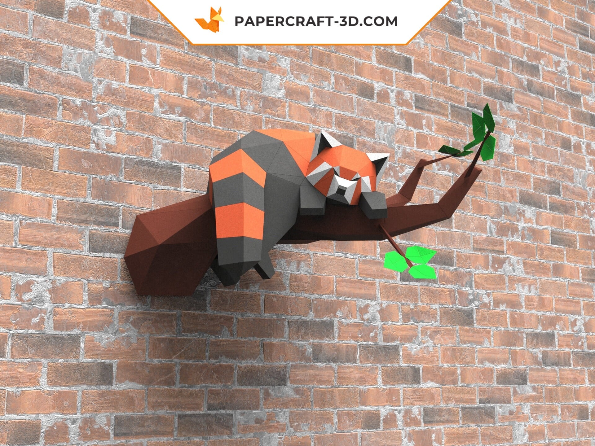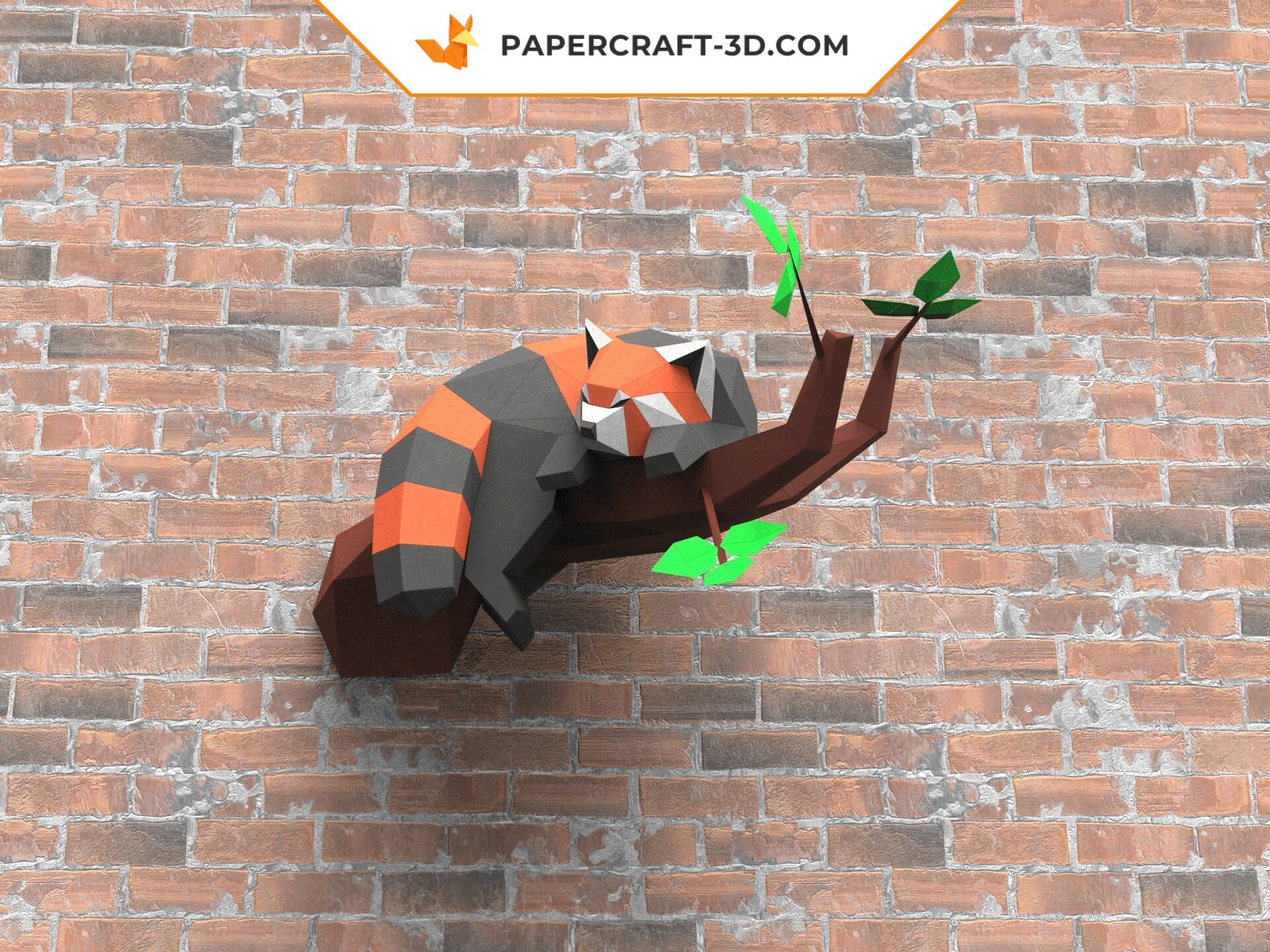 Papercraft panda rouge en origami 3D : kit digital ou box complète